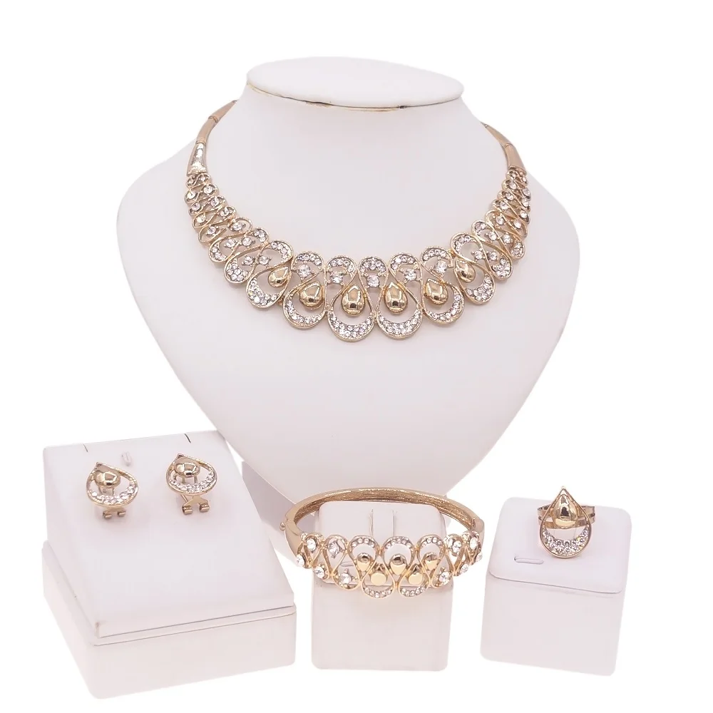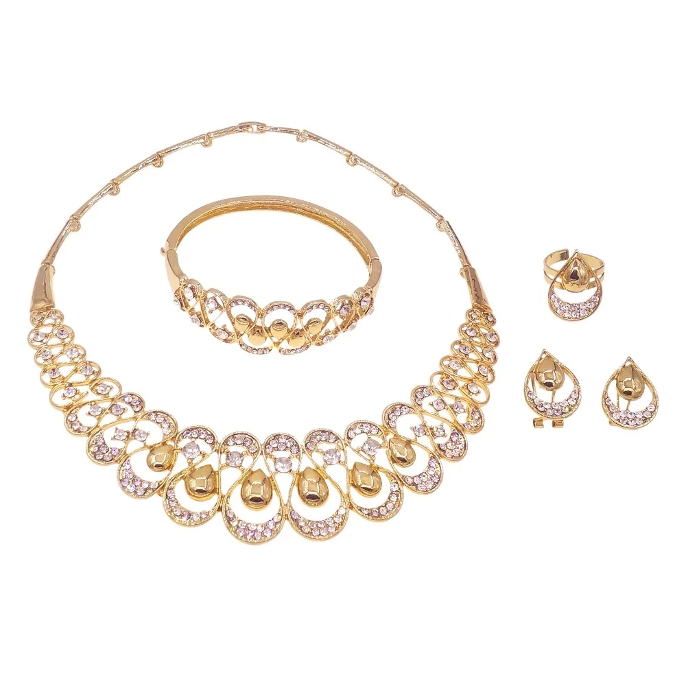 Wholesale Gold Jewelry Set Nigerian Fashion Jewelry Necklace Set Bangle 18 k Gold Plated African Jewelry For Women