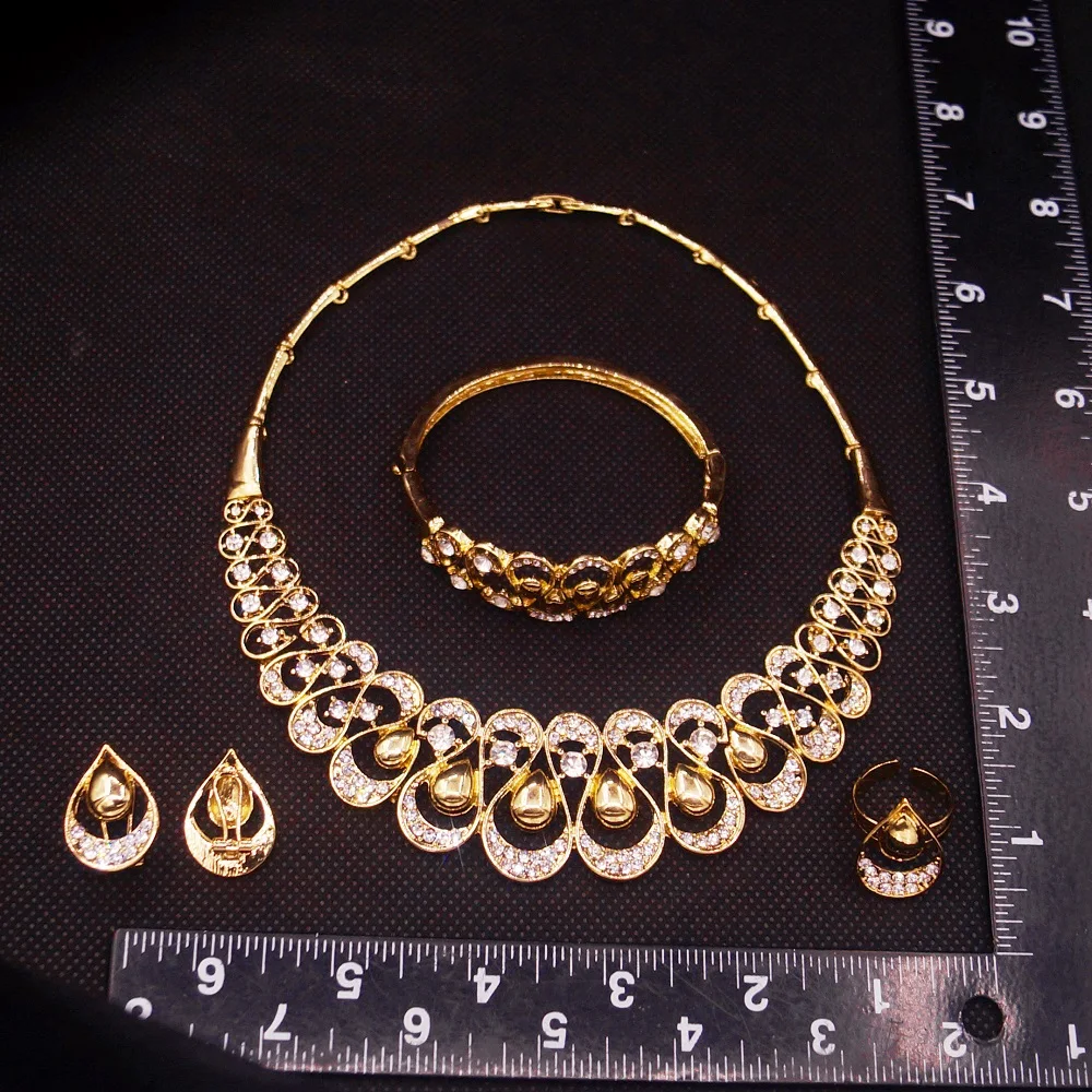 Image for Wholesale Gold Jewelry Set Nigerian Fashion Jewelry Necklace Set Bangle 18 k Gold Plated African Jewelry For Women