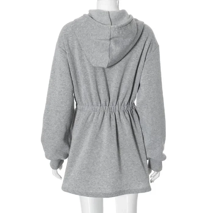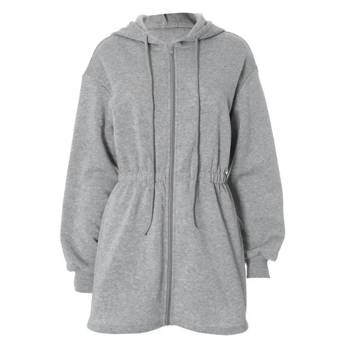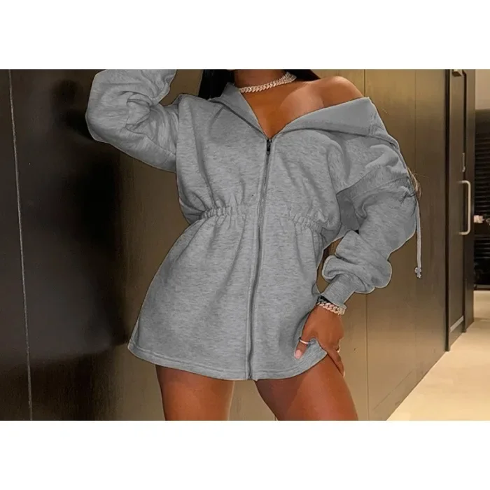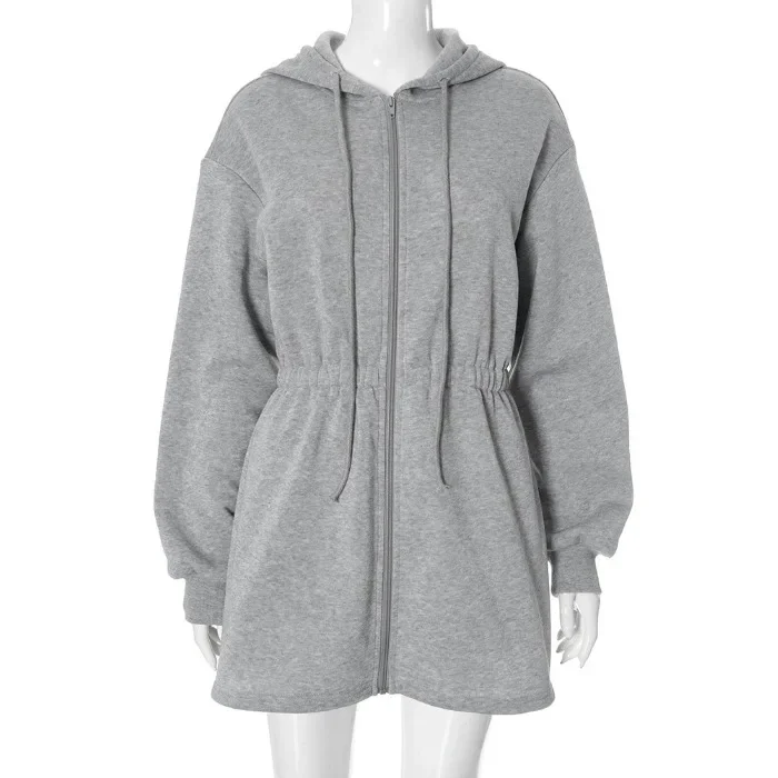 Hooded Short Dress for Women Summer and Fall 2025 New Casual Sexy High Waisted Zipper Short Dresses Solid Long Sleeved Dress