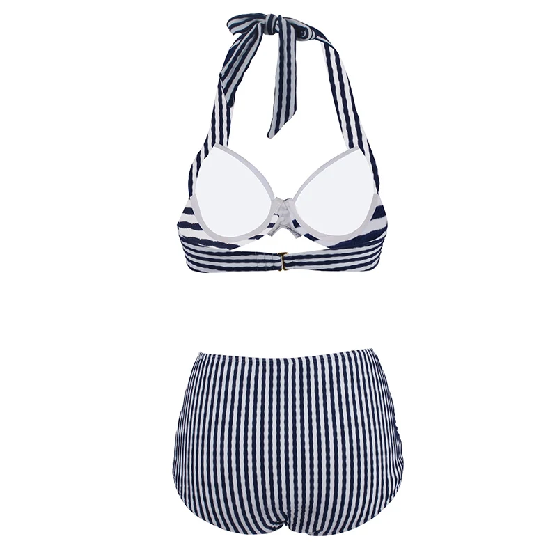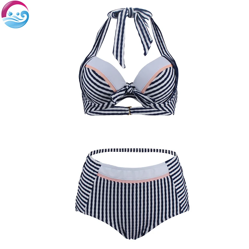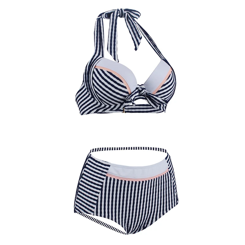 Hot Sale Jacquard High Waist Underwire Gathered Plus Size Striped Swimwear Women's Plus size bathing suits 1934
