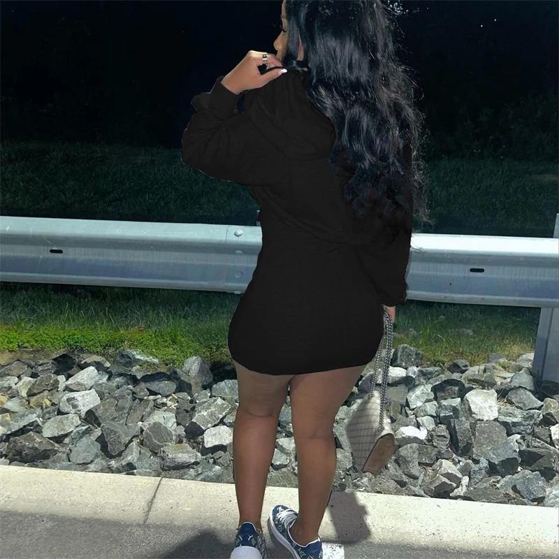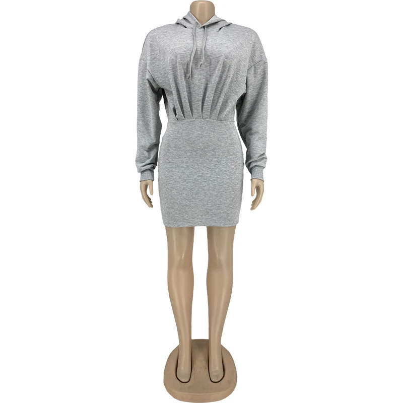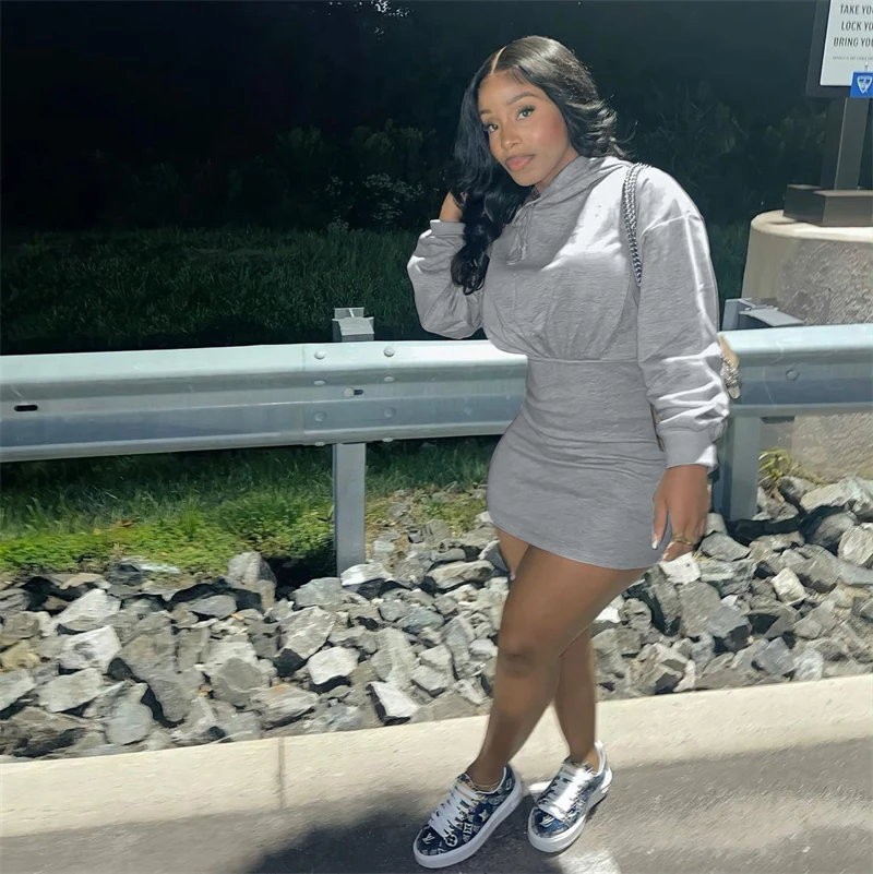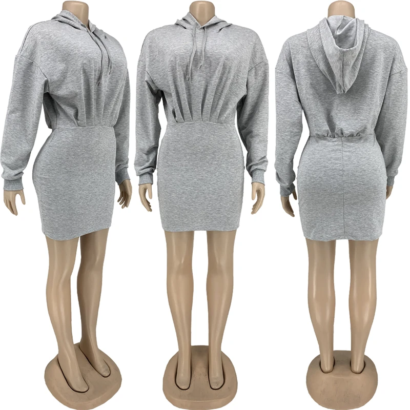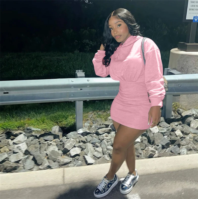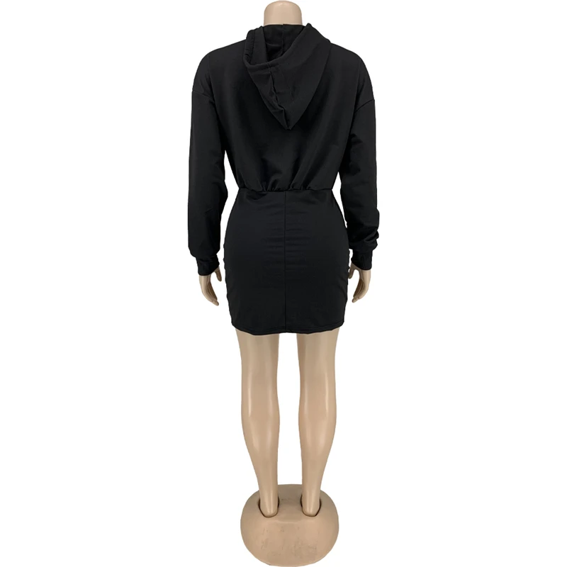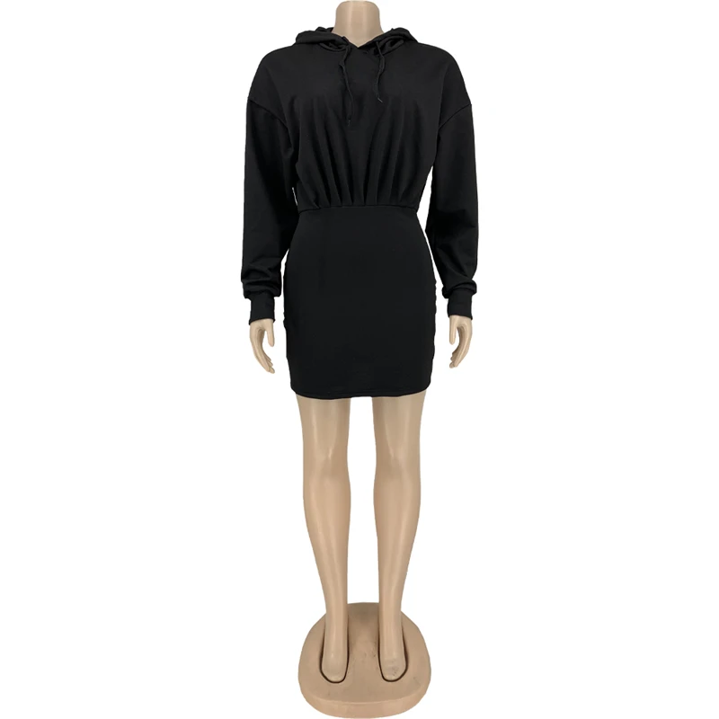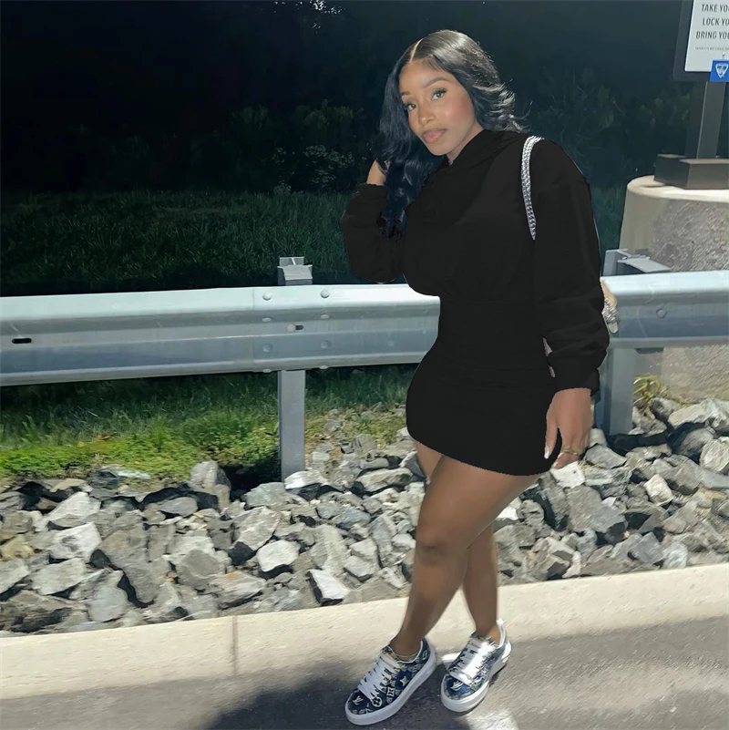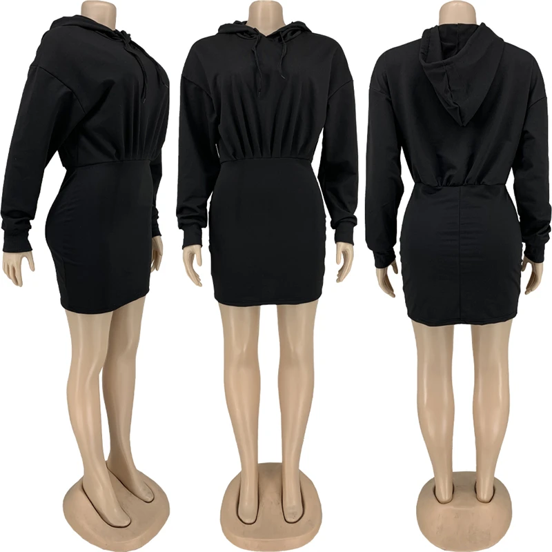 hot sale workwear cute 2024 spring collection modest women's casual cotton long sleeve hoodie bodycon mini dress for women