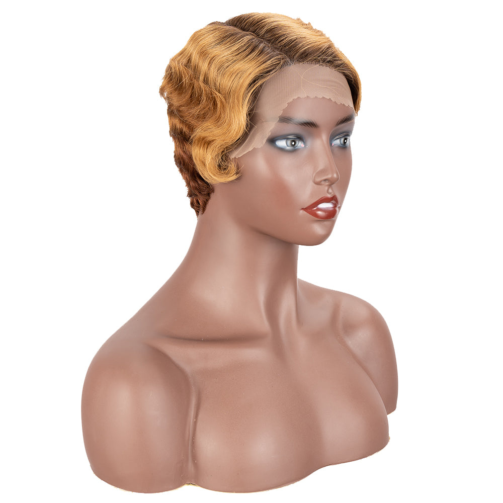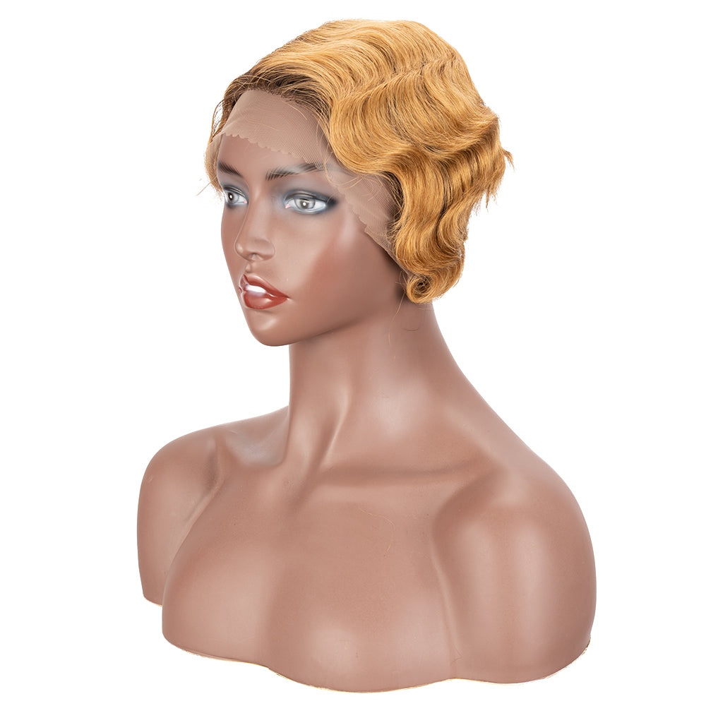 Brazilian Hair Finger Wave Curly Lace Wig Pixie Cut Human Hair Wigs U Part Lace Front Wig