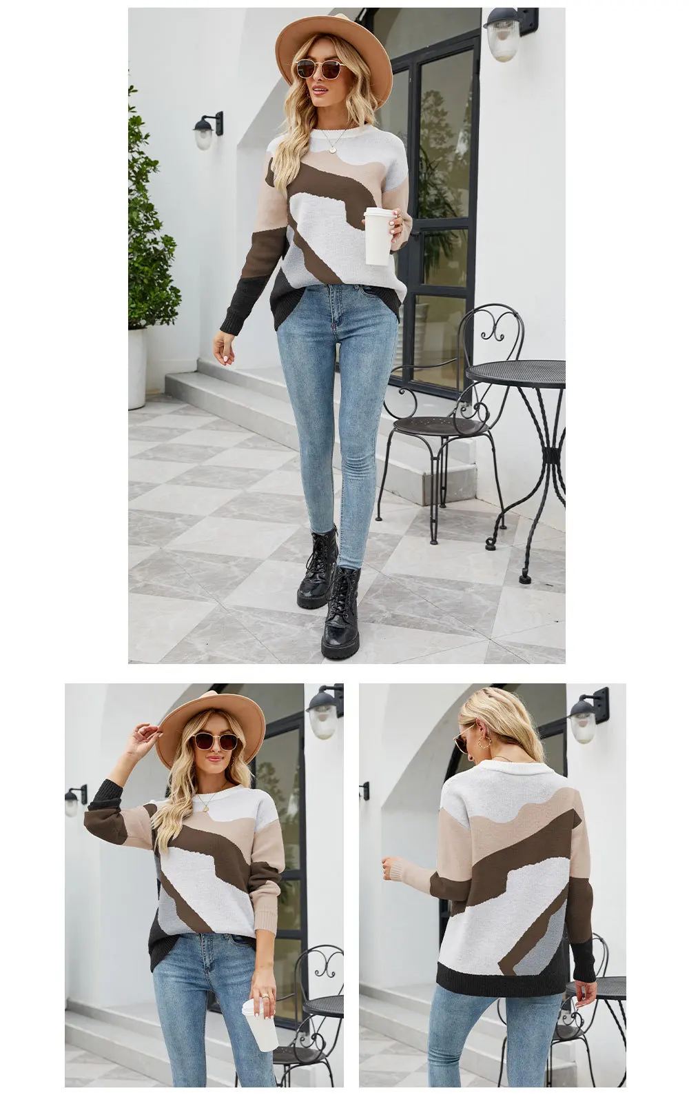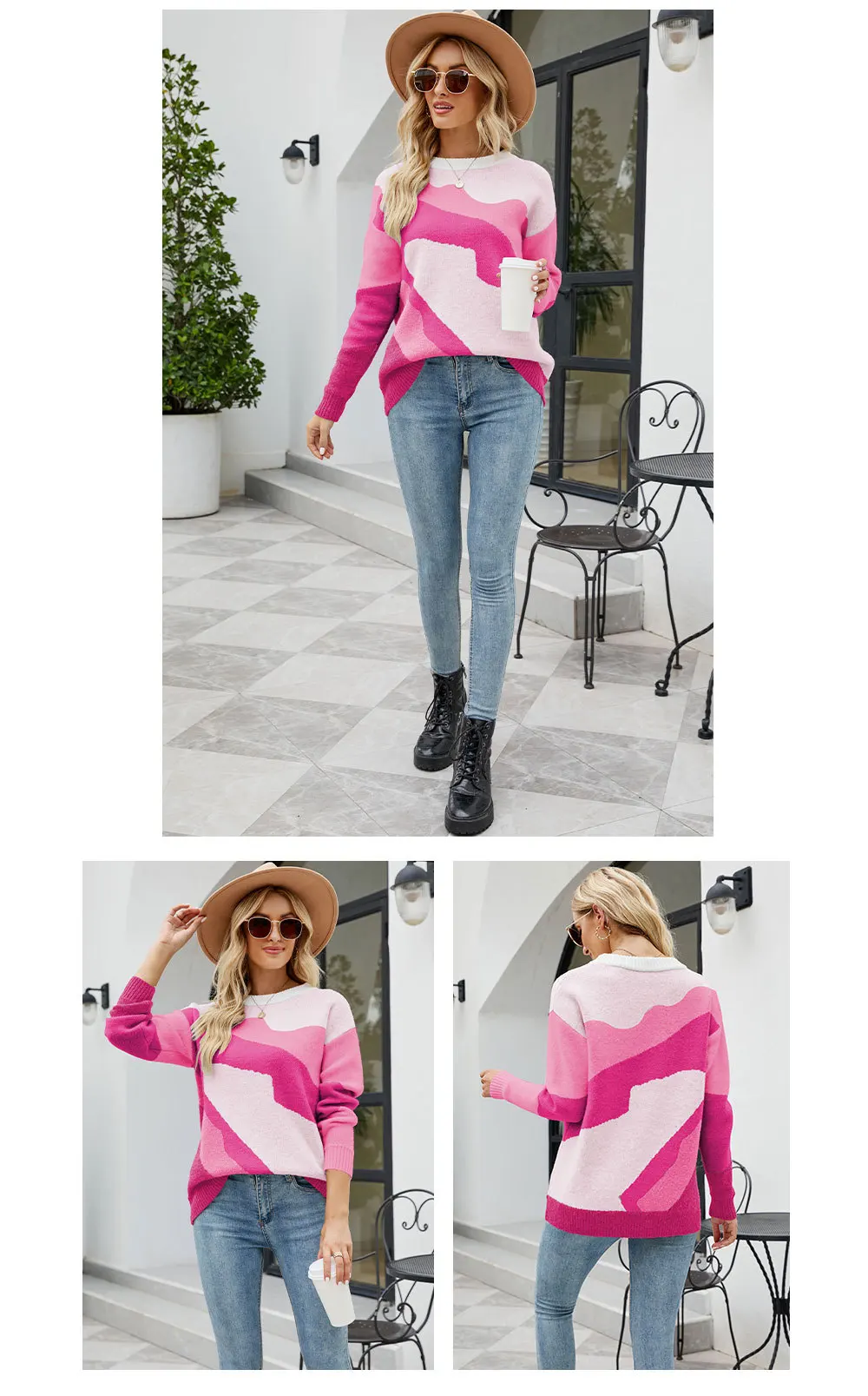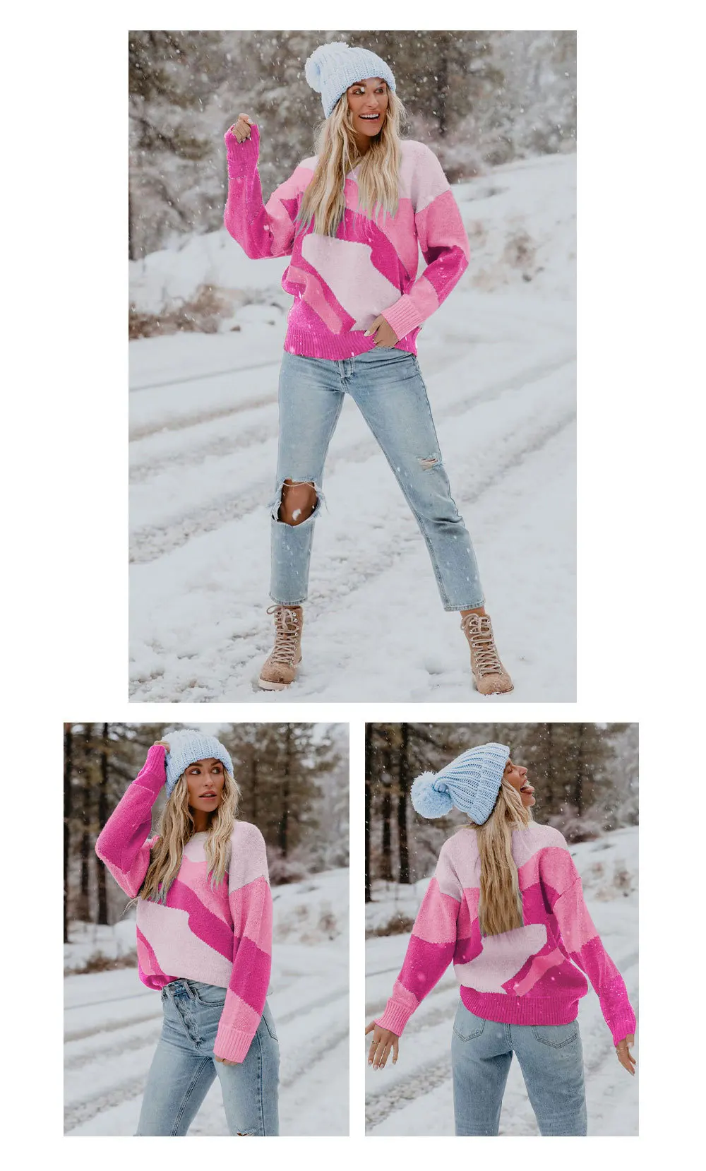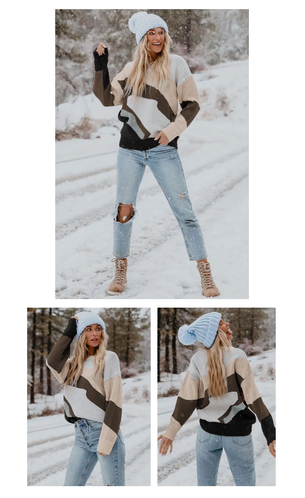 Hot Selling Winter Casual Multi Color Match Knit Women Sweater