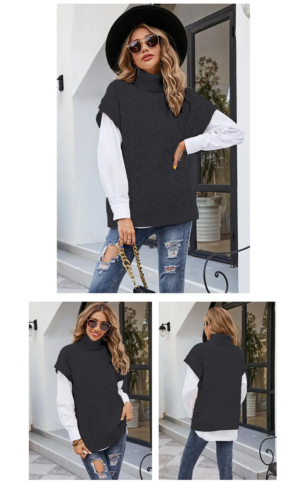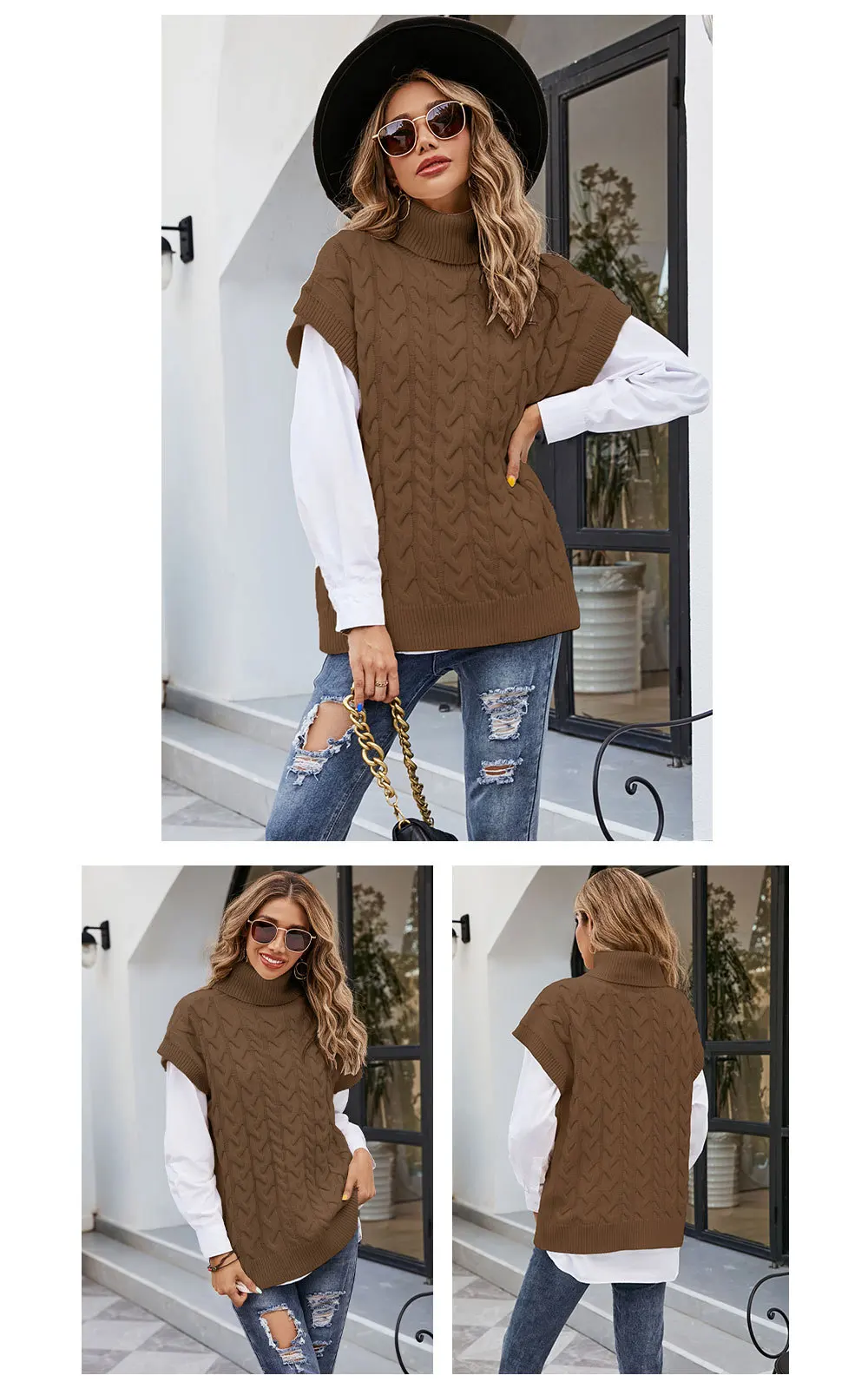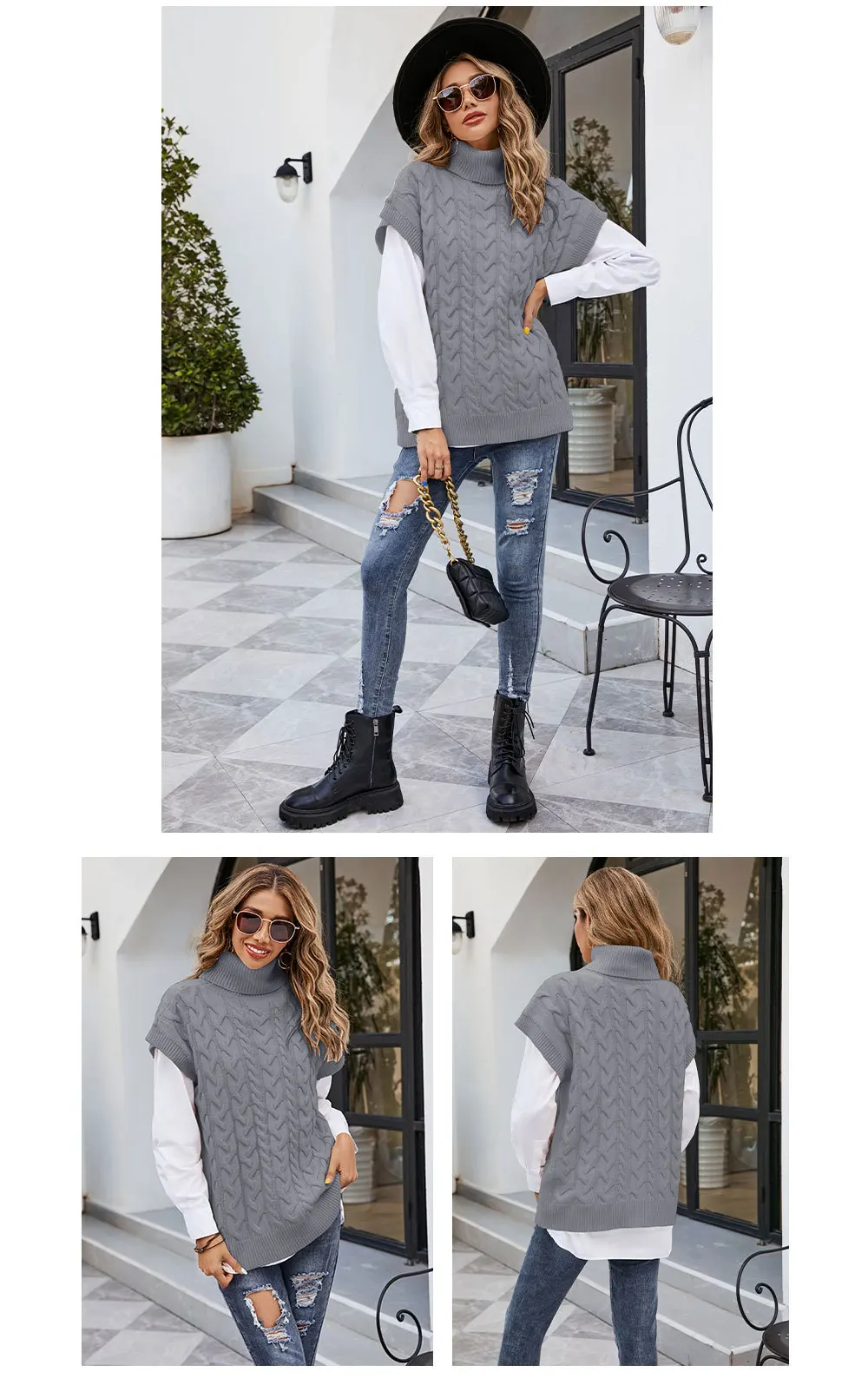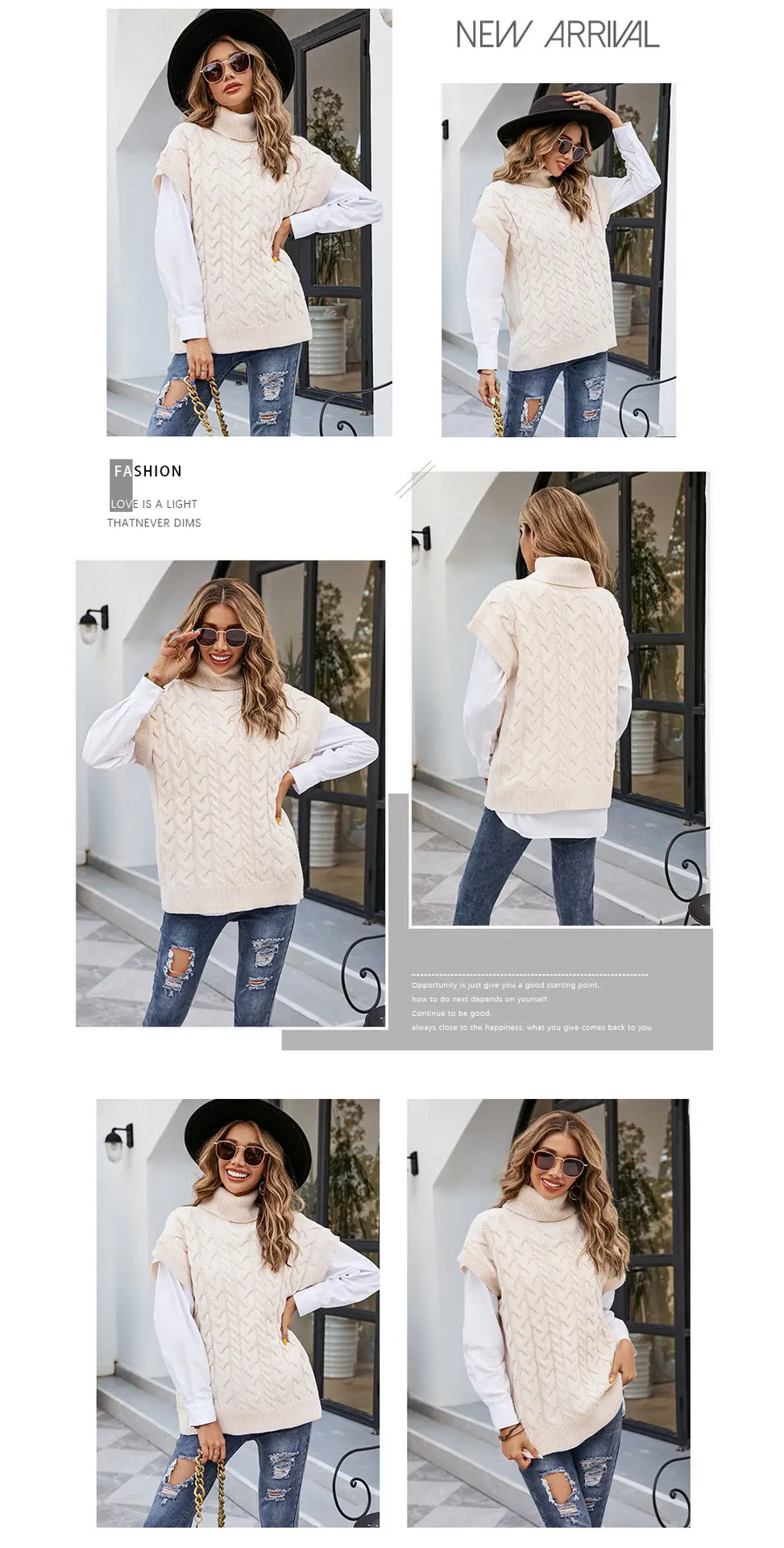 Hot Selling Winter Casual Sleeveless Solid Fashion Women Turtle Neck Sweater