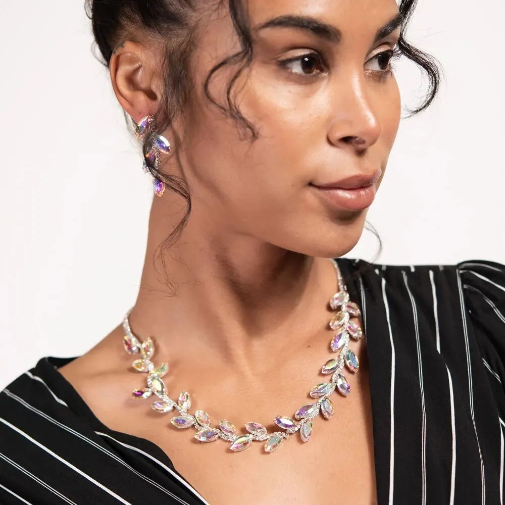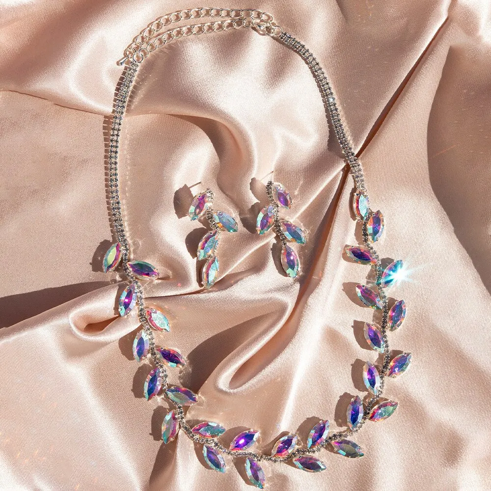 Hot Selling Womens Luxury Wedding Flower CZ Zircon Jewelry Sets Gift Fashion Water Drop Necklace And Earrings Set Jewelry Set