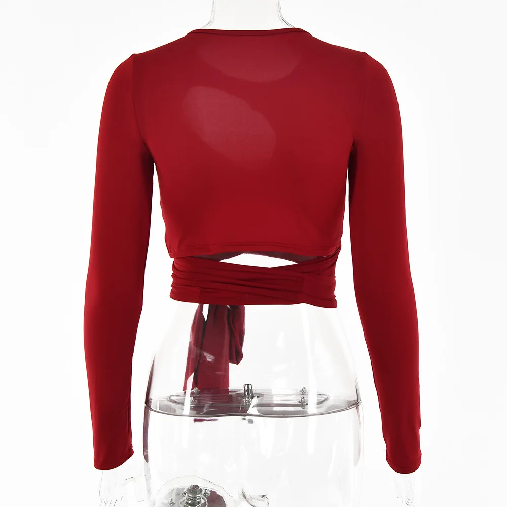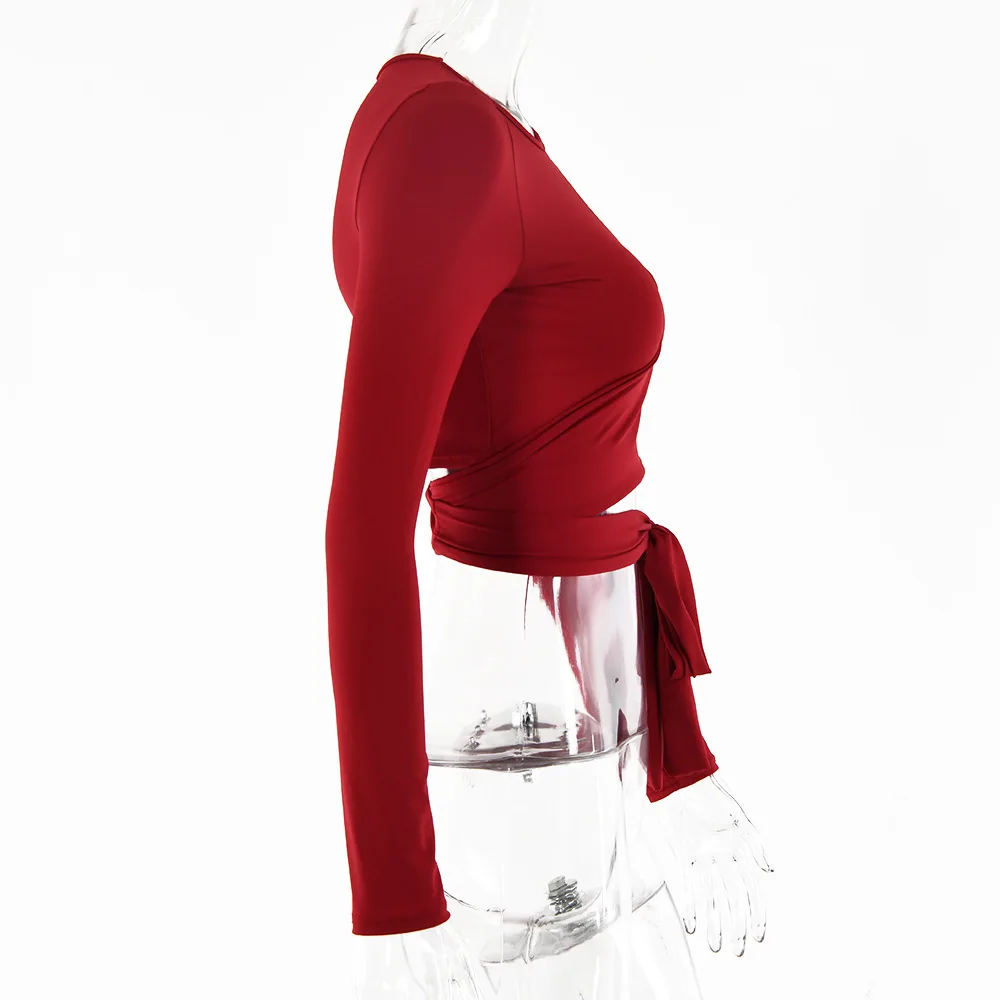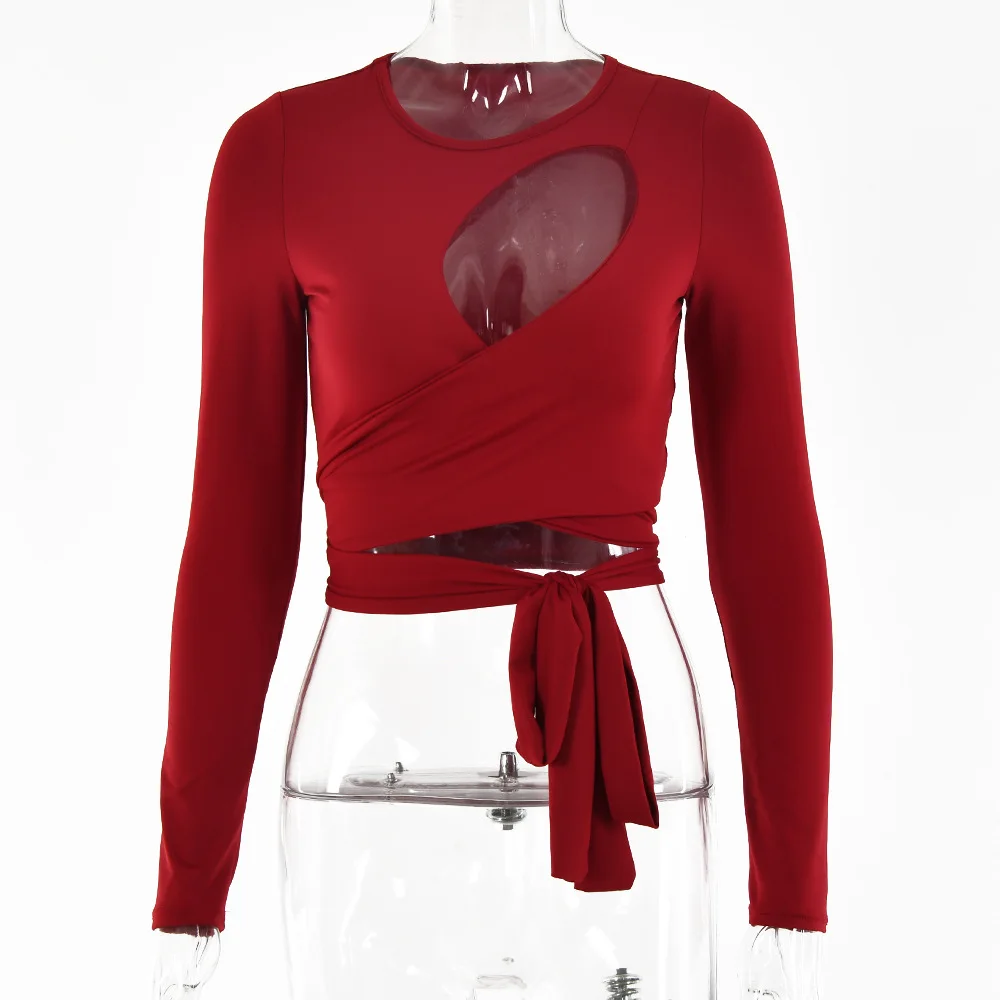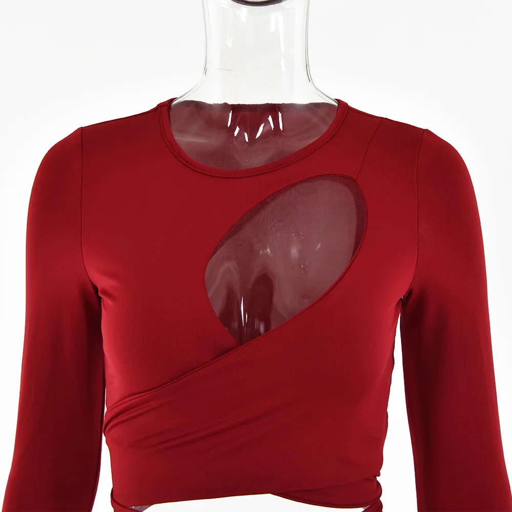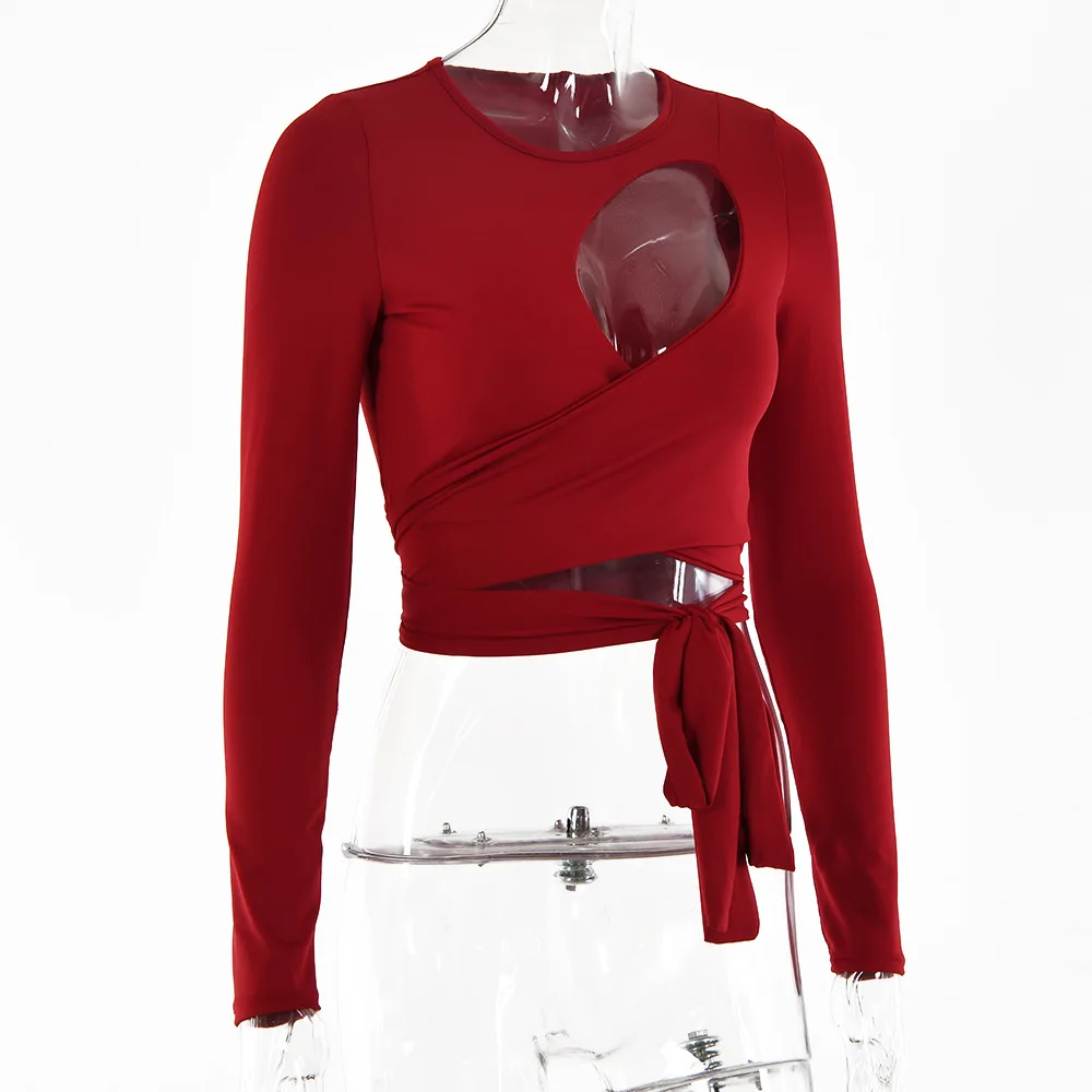 Hot-selling women's summer new sexy navel top light hollow chest strap round neck t-shirt