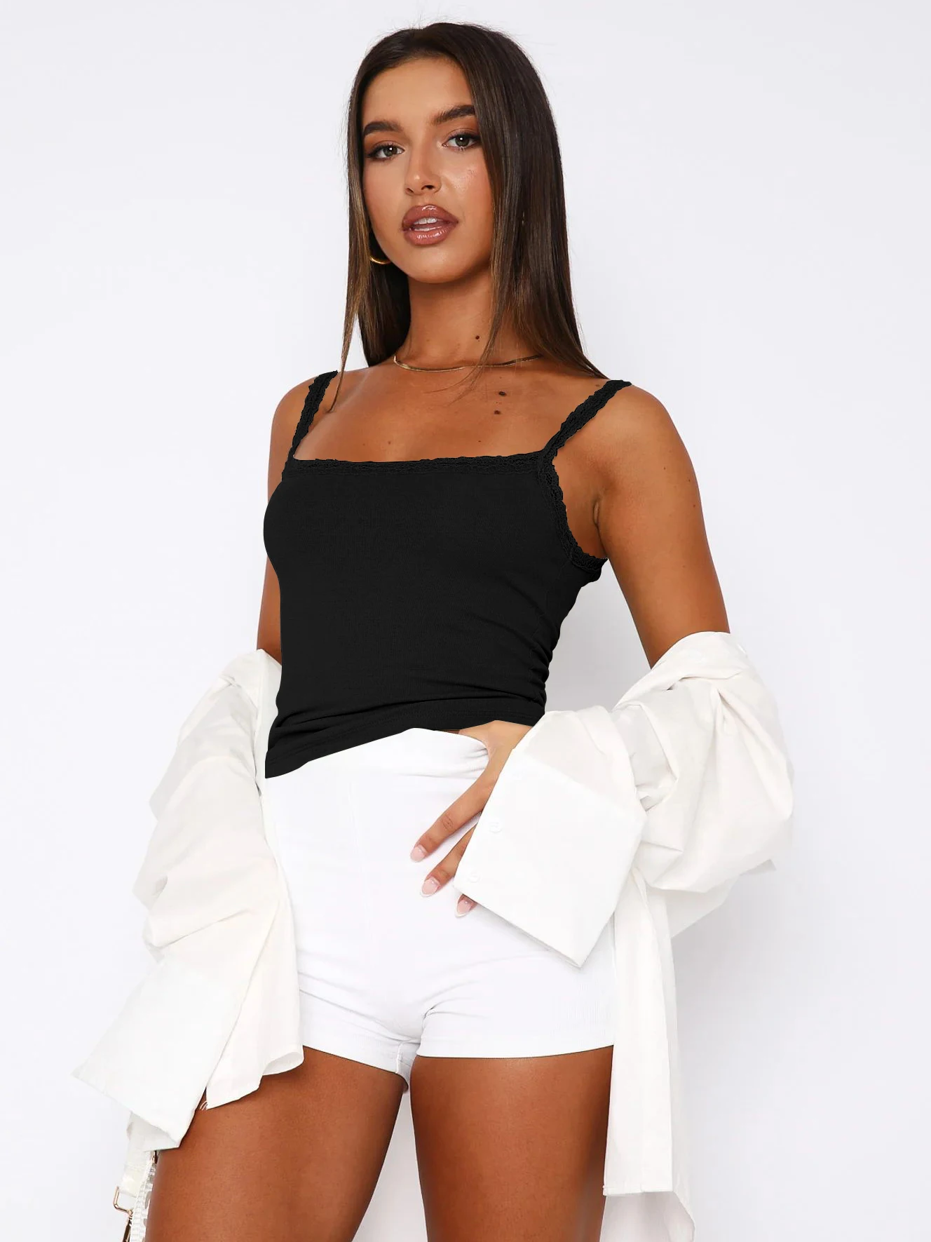 Hot Sexy Short Lace Spaghetti Strap Cami Tank Top Crop Women Summer