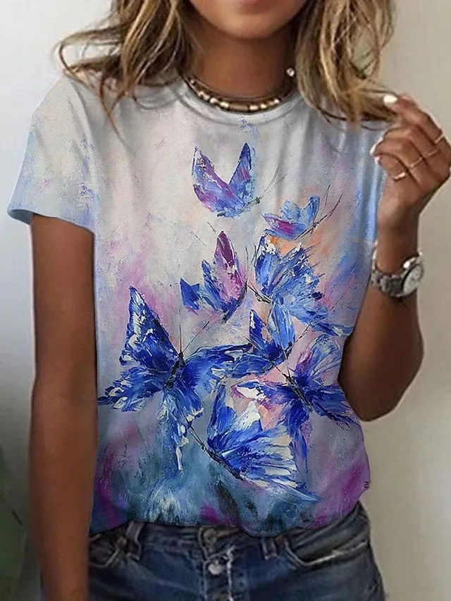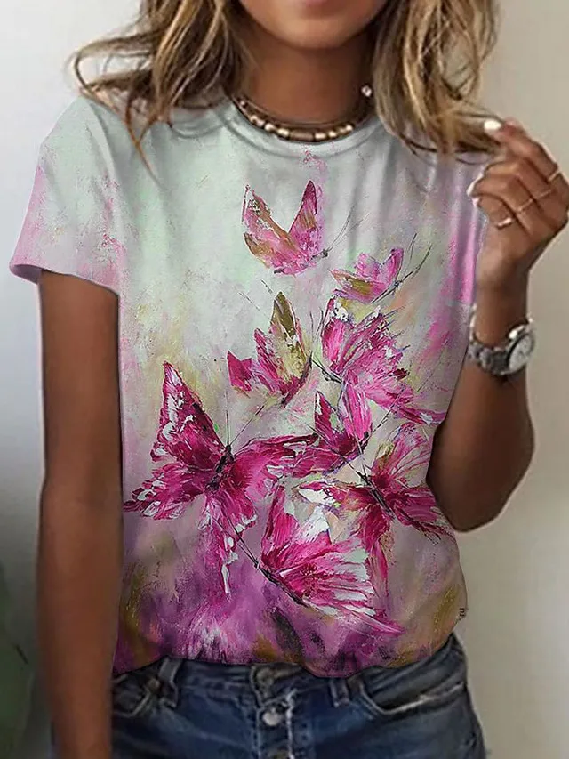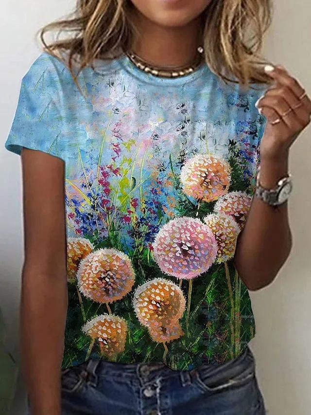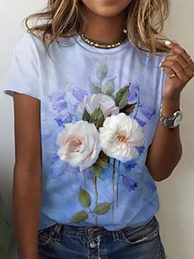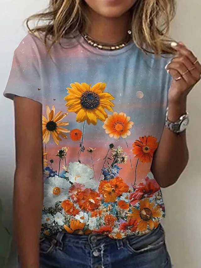 hot summer new round neck printing short-sleeved pullover loose-fitting women's large size short-sleeved T-shirt 3D print