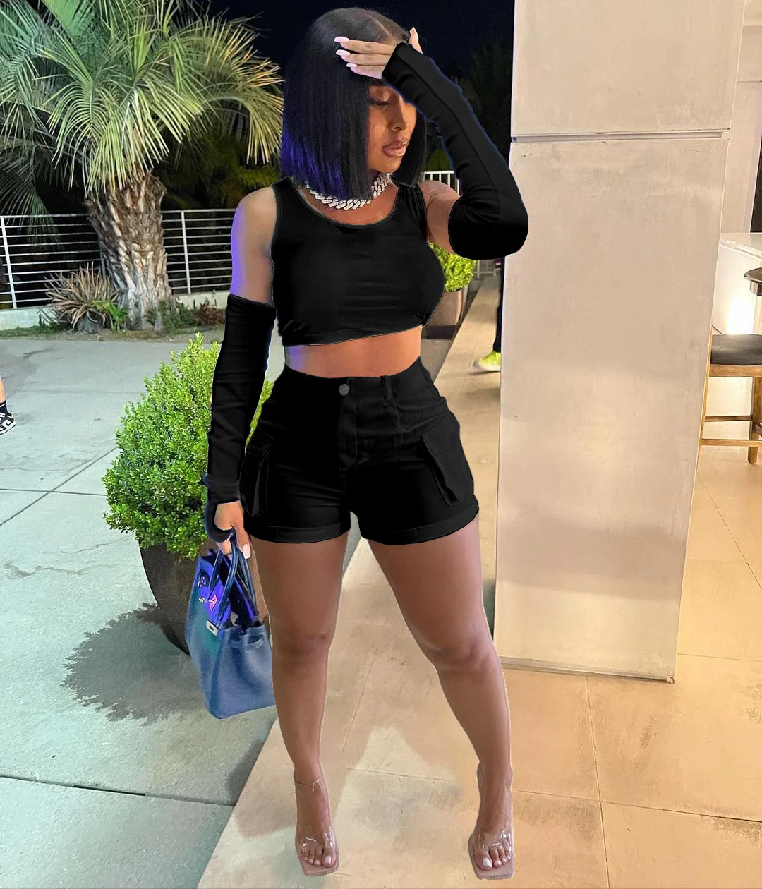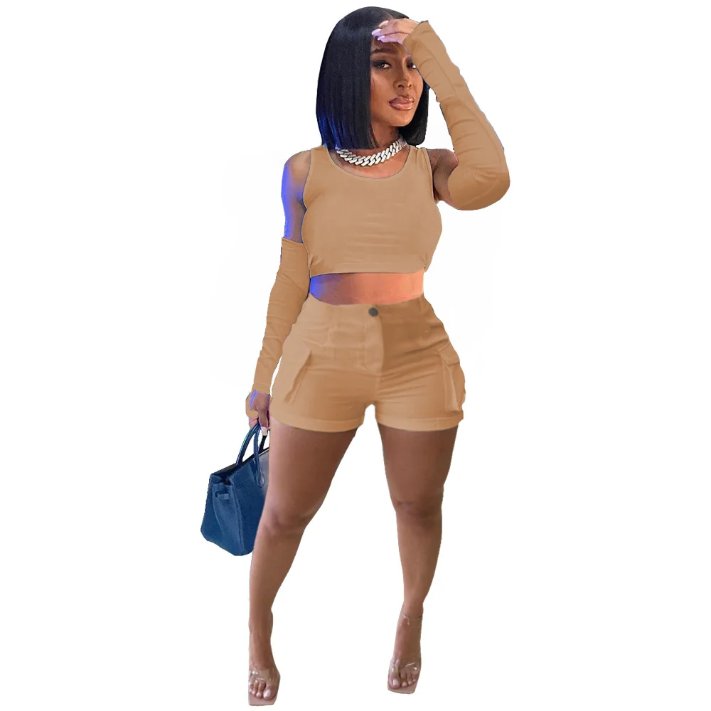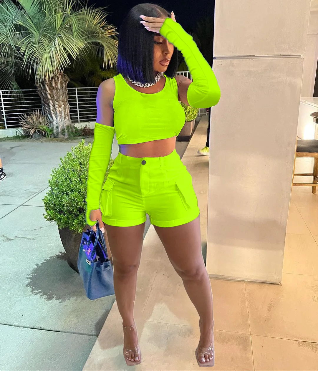 Hot Summer Outfits Women 2023 Solid Color Loungewear Sets 3 Piece Oversleeve Crop Tank Top and Shorts 2 Piece Short Set