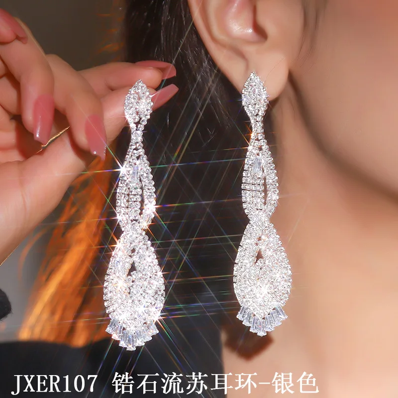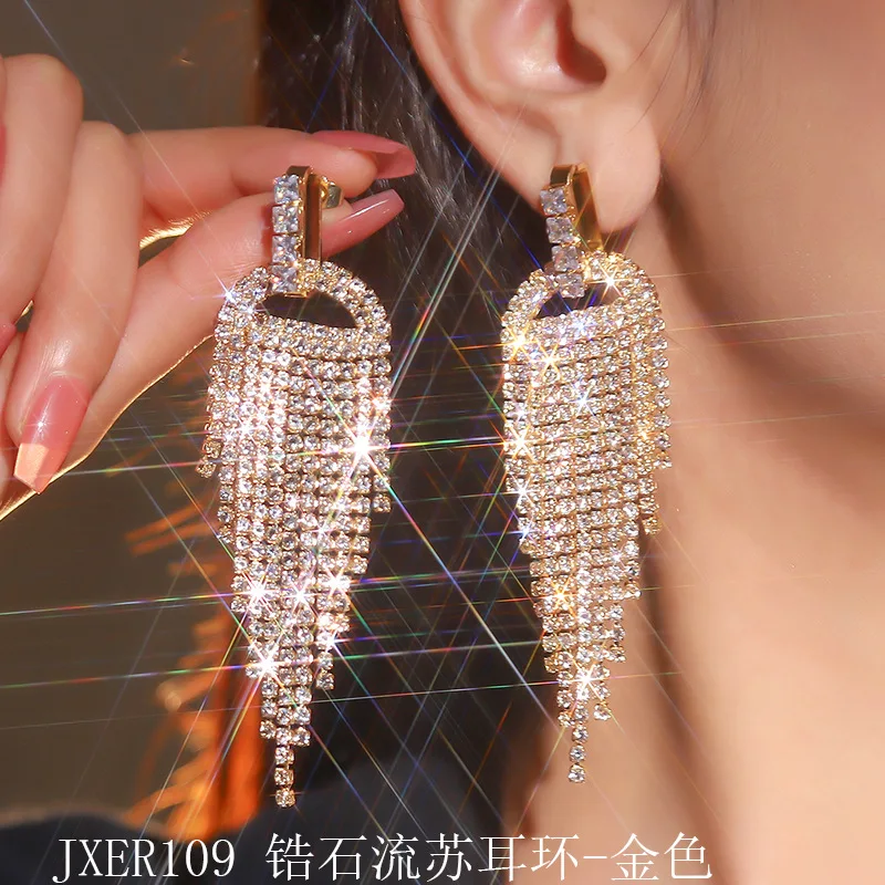 Hoyon Hot Selling Luxury Triangle Rhinestone Tassels Earrings Long Tailed Diamond Earrings Vintage Jewelry Rhinestone Earrings