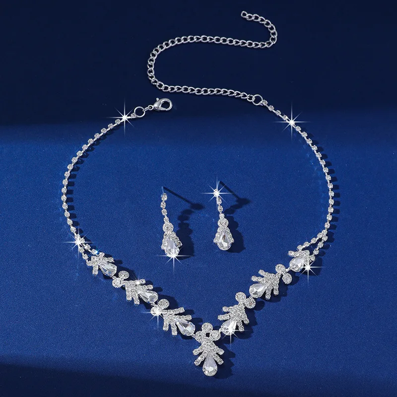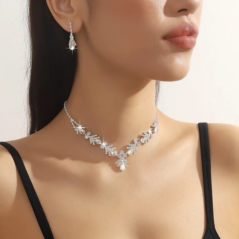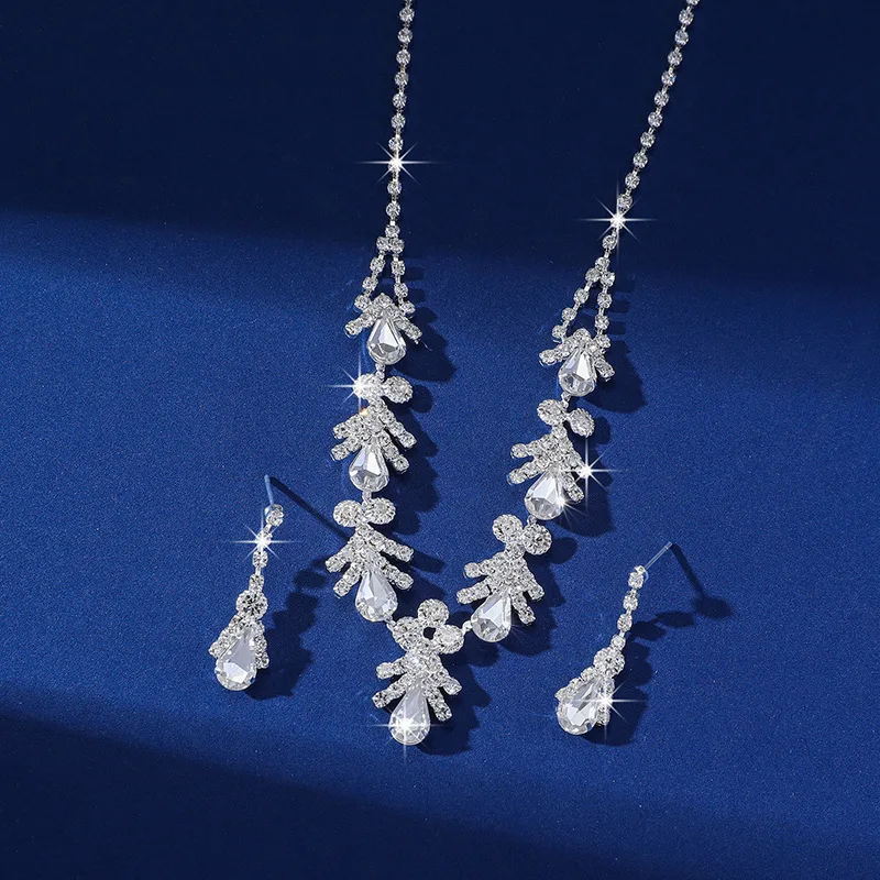 Hoyon New Arrival Shiny Cubic Zirconia CZ Crystal Wedding Bridal Necklace and Earring Sparkly Jewelry Set