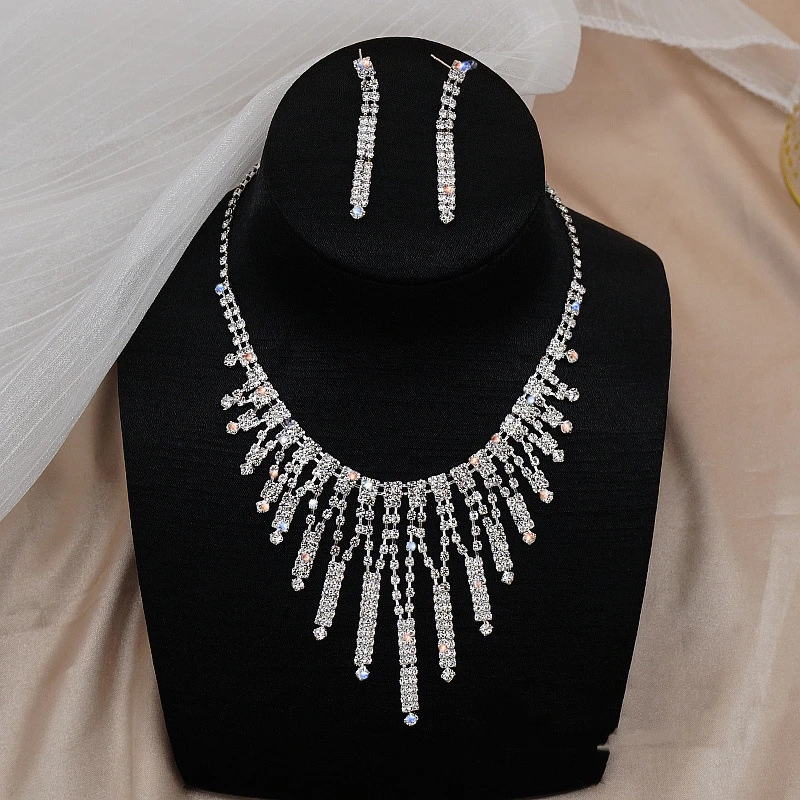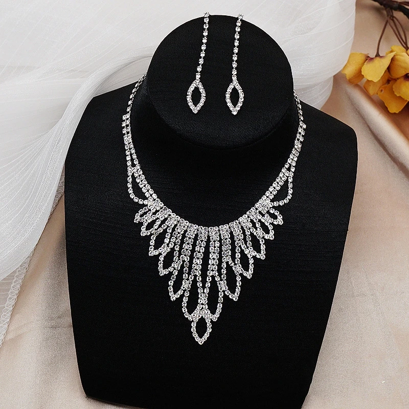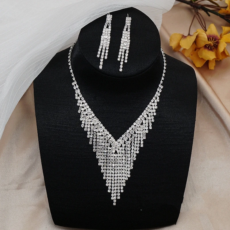 Hoyon Shining Crystal Jewelry Set Luxury Rhinestone Crystal Earrings Necklace With Wedding Dress Elegant Romantic Bridesmaid