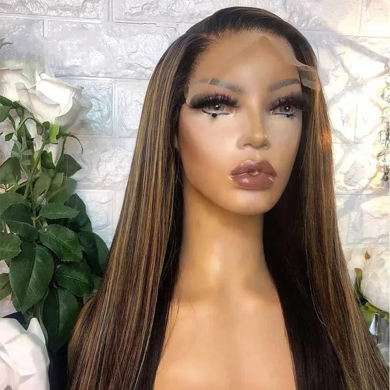 Human Hair Invisible Knots Scalp Highlight Brown Long Straight Cuticle Aligned Hair Lace Front Wig