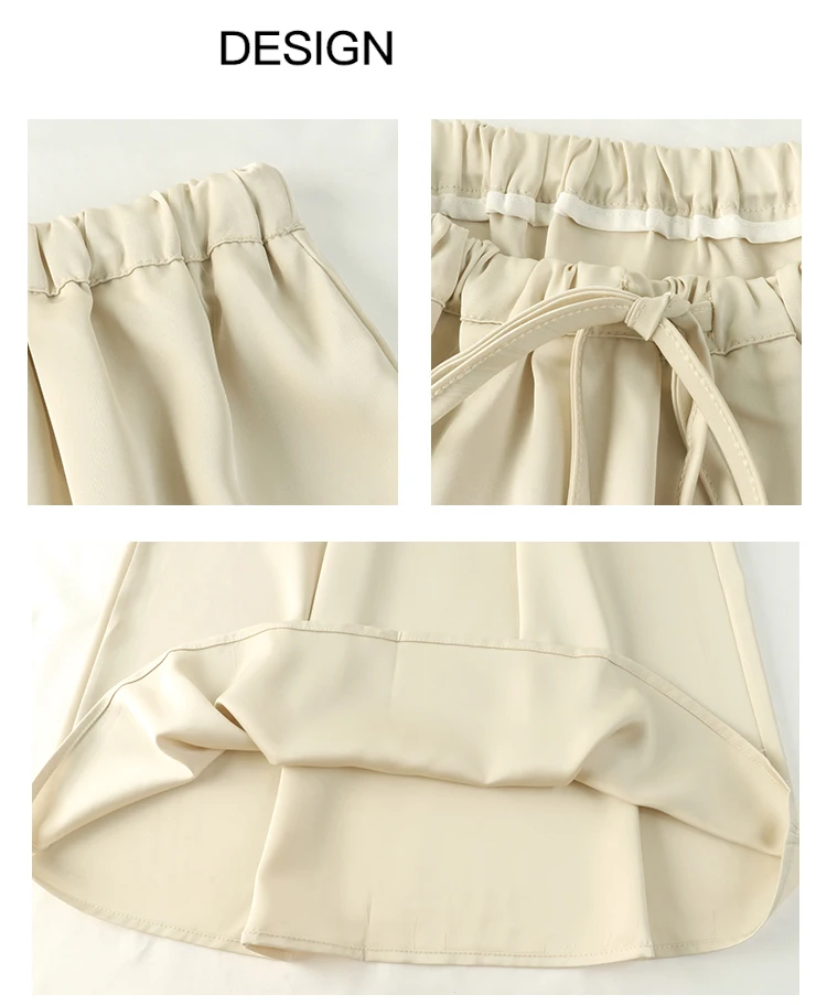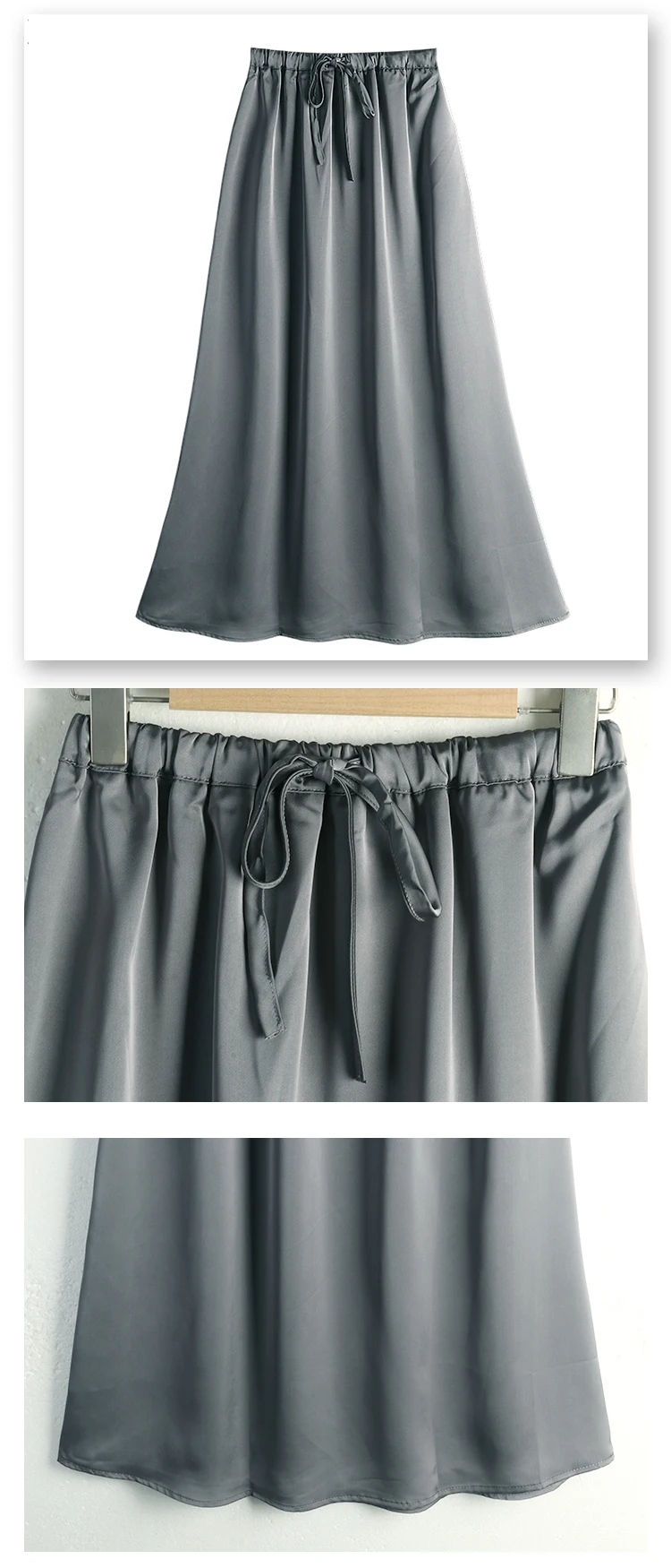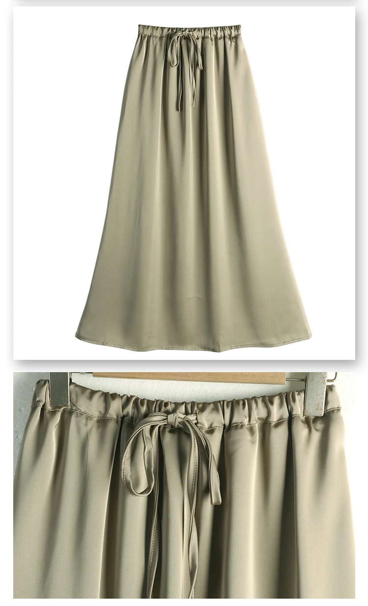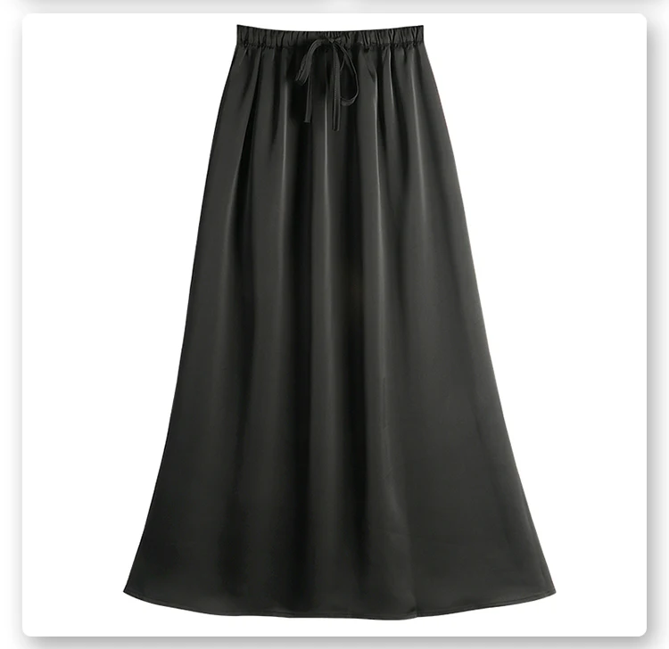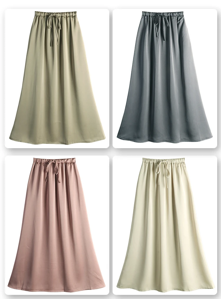 Ice Silk Satin Long Maxi A-line Skirt Ladies Elegant Summer Korean Fashion A-line Faldas Female Plain Vintage Casual Women Skirt