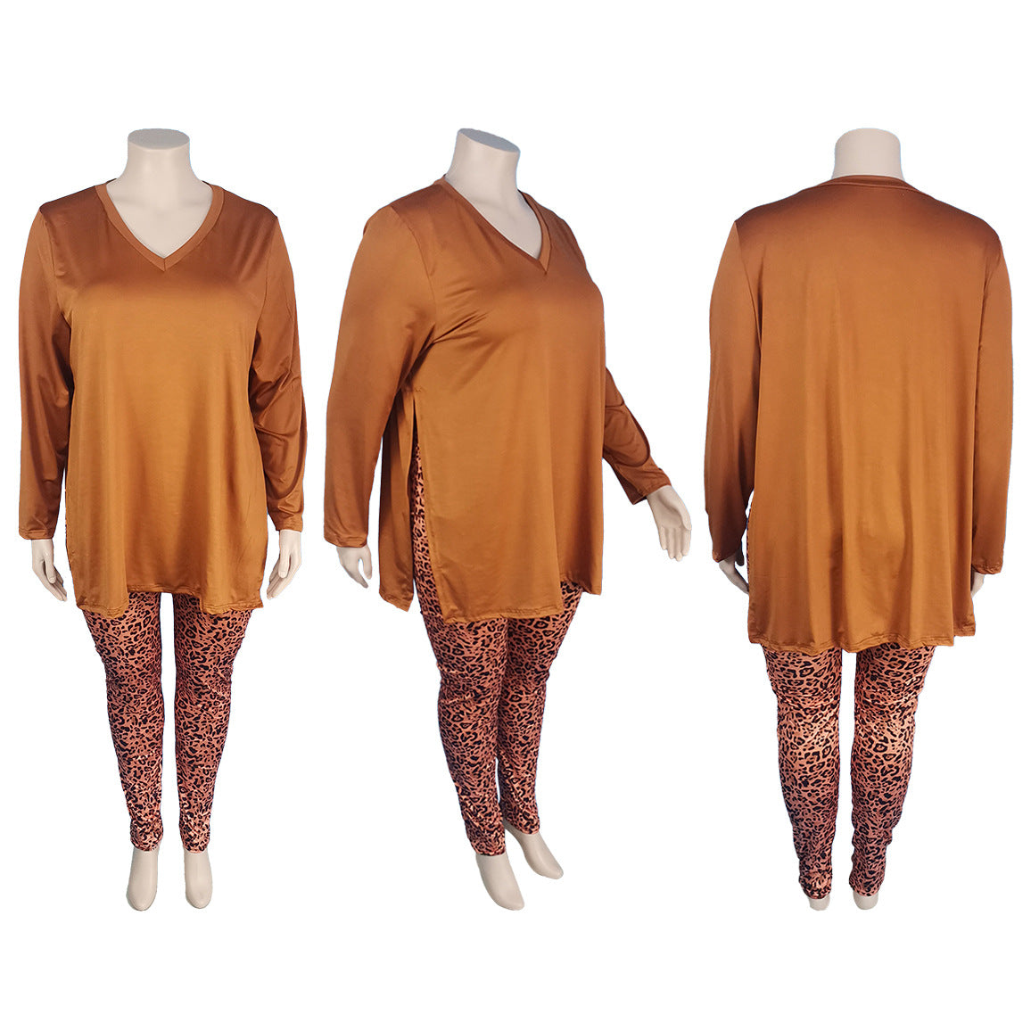 J&H 2023 new design 5XL plus size women fall sets fashion cheetah leggings and v neck tshirt lounge wear clothes