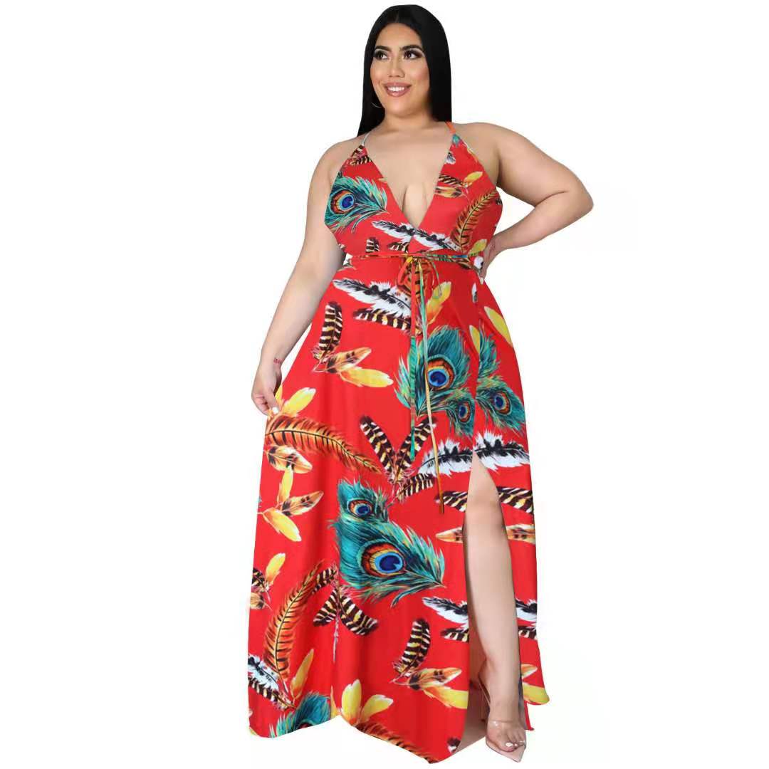 J&H fashion 12 styles available plus size printed women's dresses sexy deep v neck dress with high slit casual evening dress
