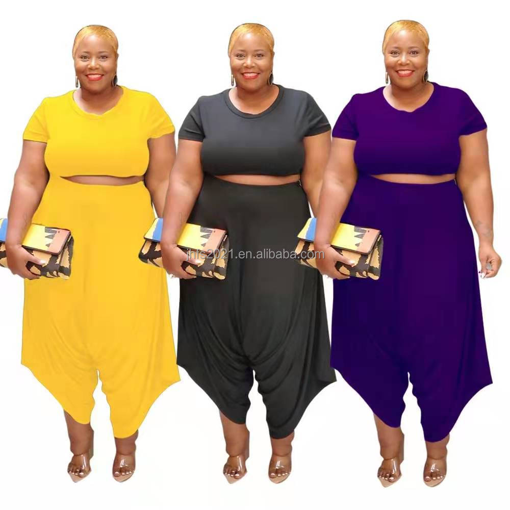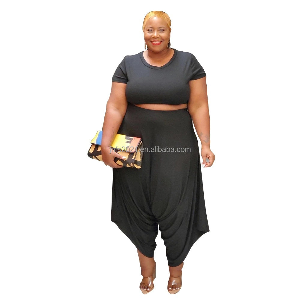 J&H fashion 5XL plus size two piece pants set short sleeve crop top women's heram pants set casual loose lounge wear