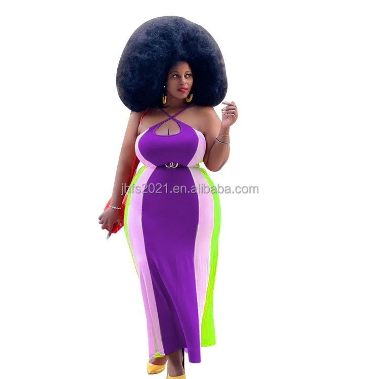 J&H fashion contrast color halter cross neck dress plus size sexy bodycon maxi dress summer africa clothing