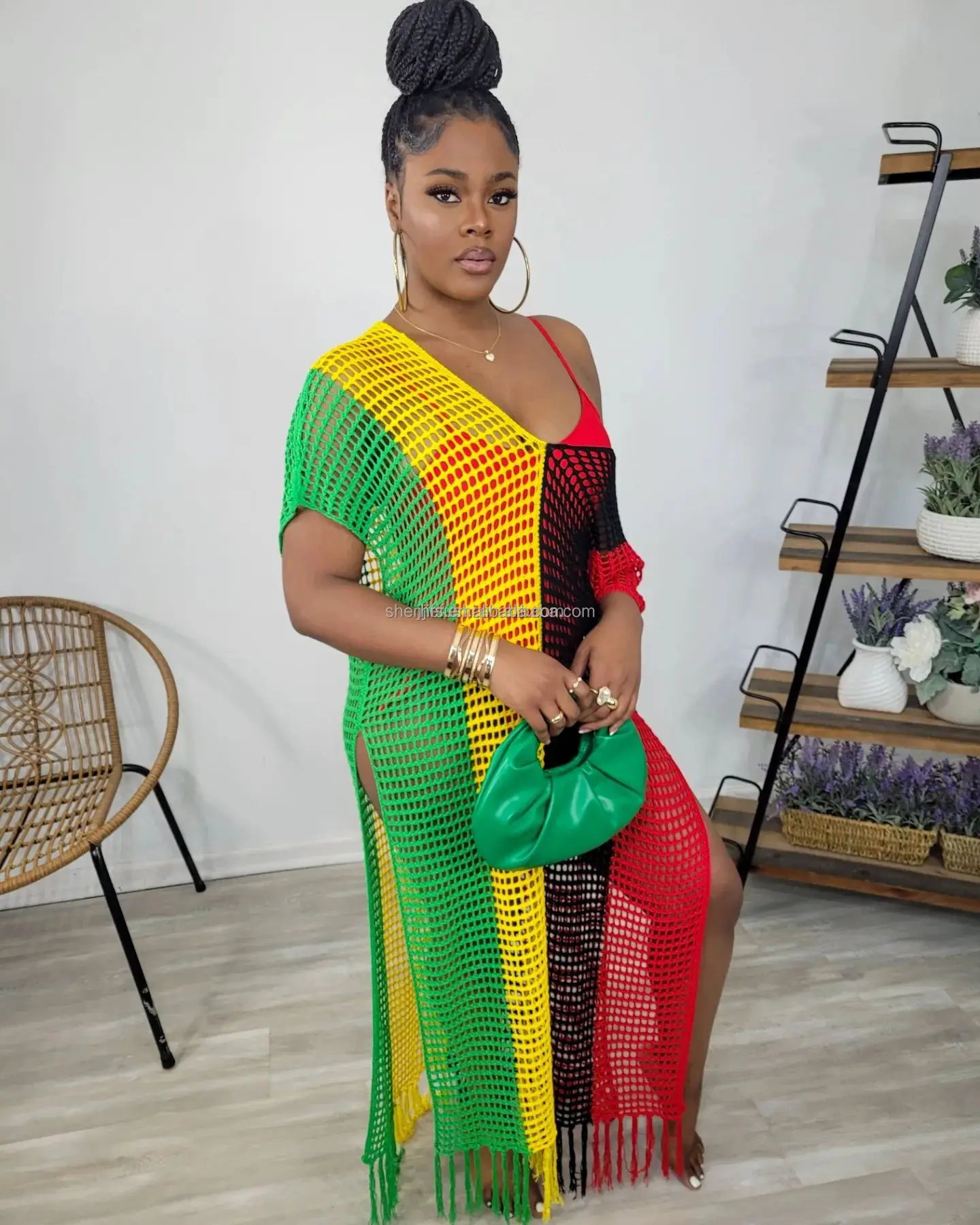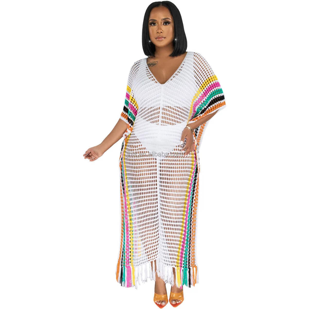 J&H Summer 2024 Women'S Long Dresses Sexy Woolen Hand Crochet Tassels Woman Summer Knitted Beach Hand Crochet Dress