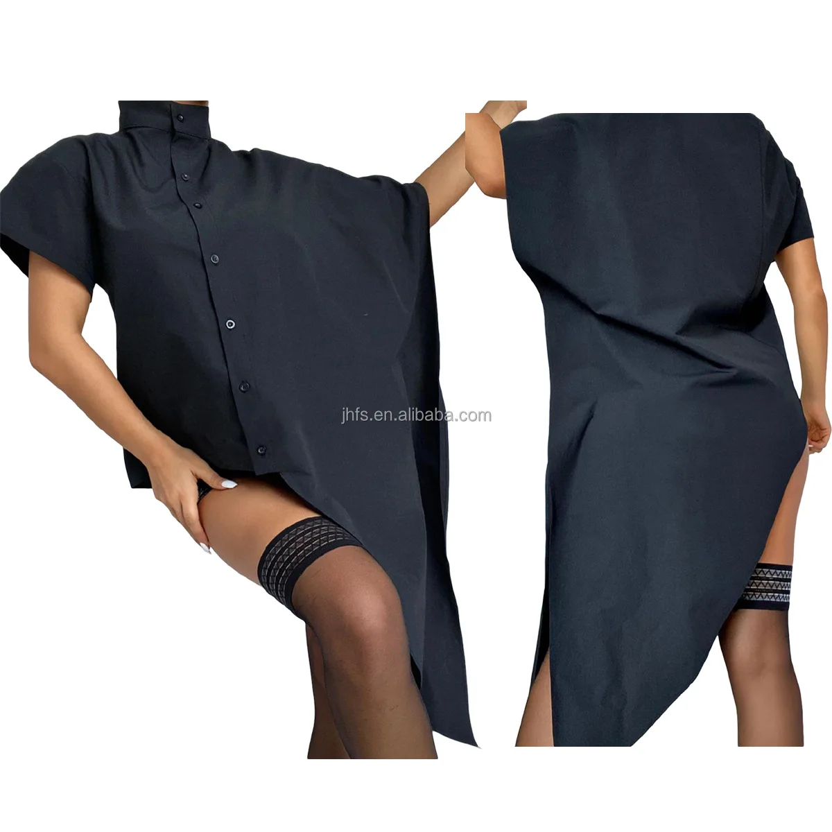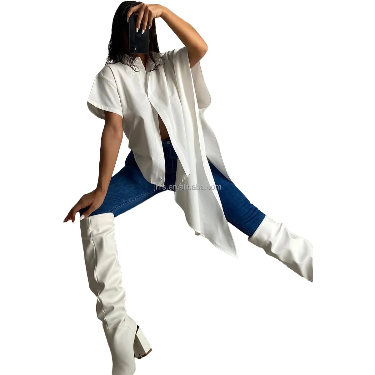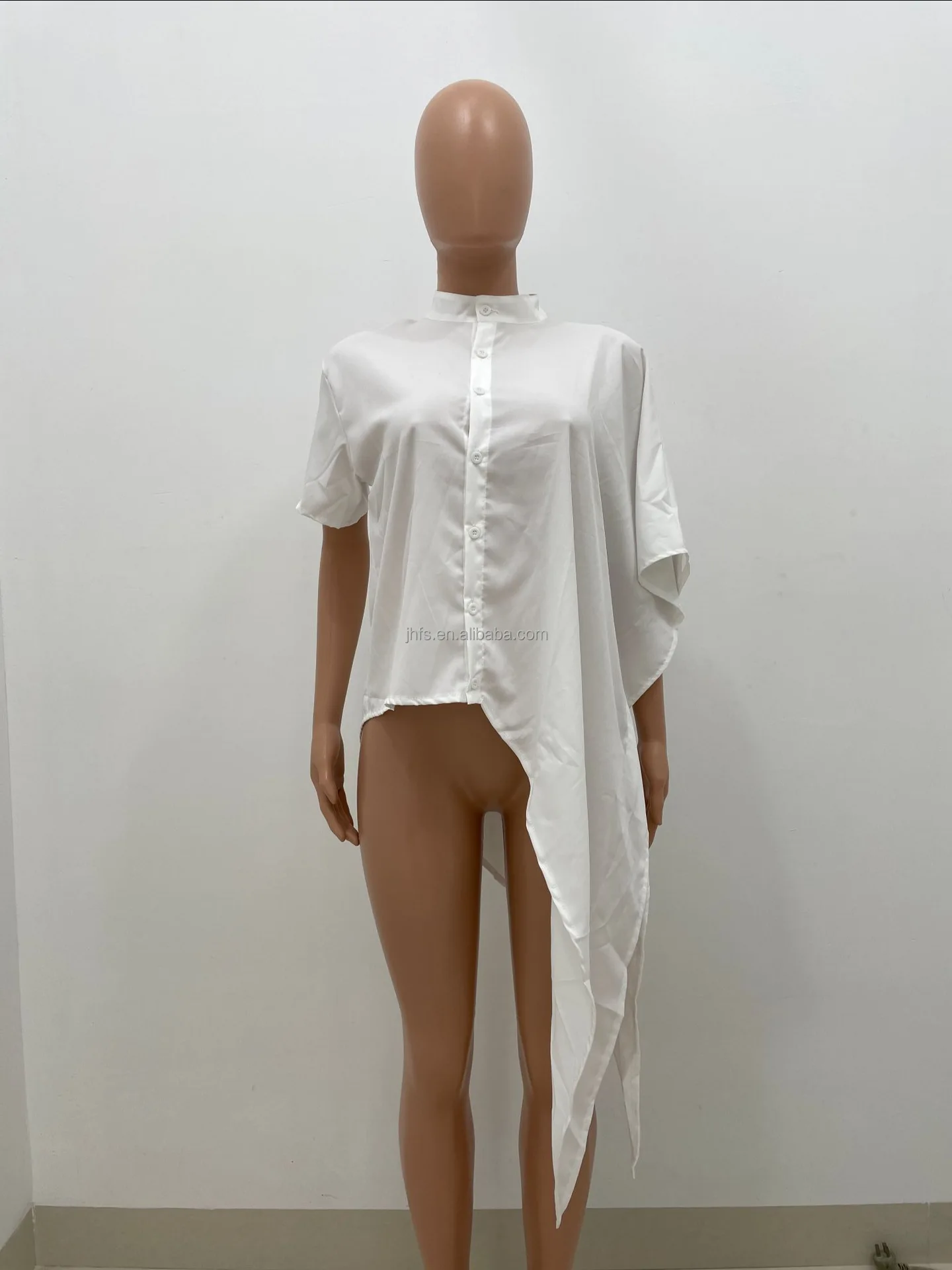 J&H wholesale Solid Color Stylish Chic top Irregular shirt Loose top Artistic fashion top Ladies short sleeve shirts
