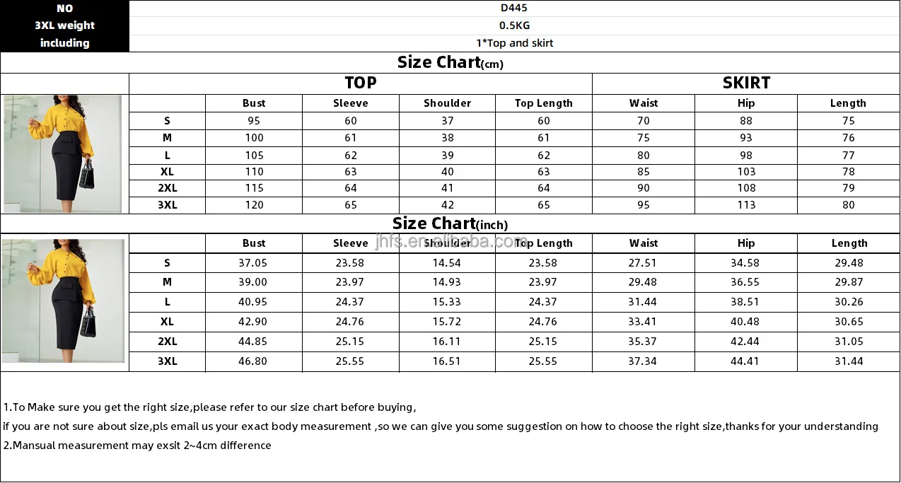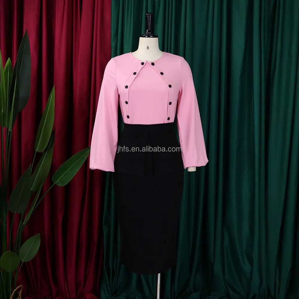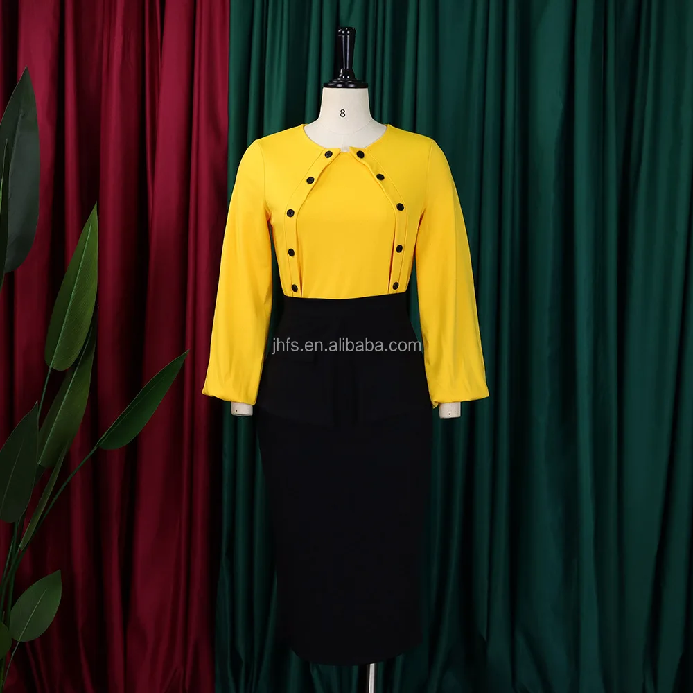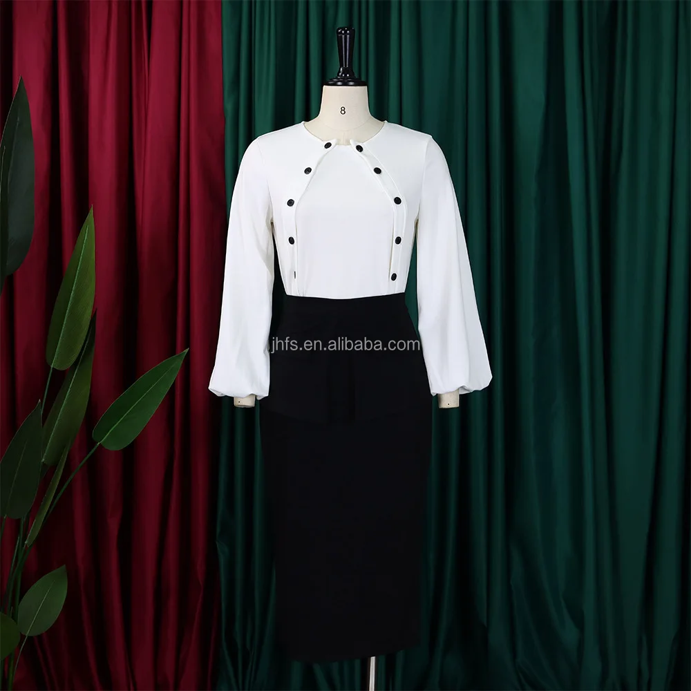 J&HLatest Design Autumn&winter Ladies Office Outfits For Women Long Sleeve Top And Wrap Hip Skirt Sets For Women Two Pieces