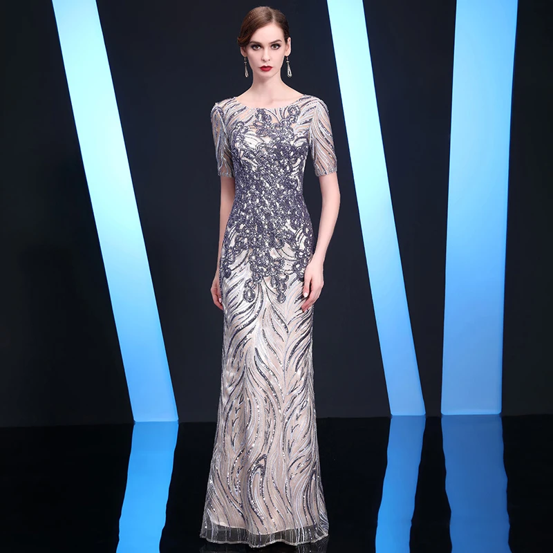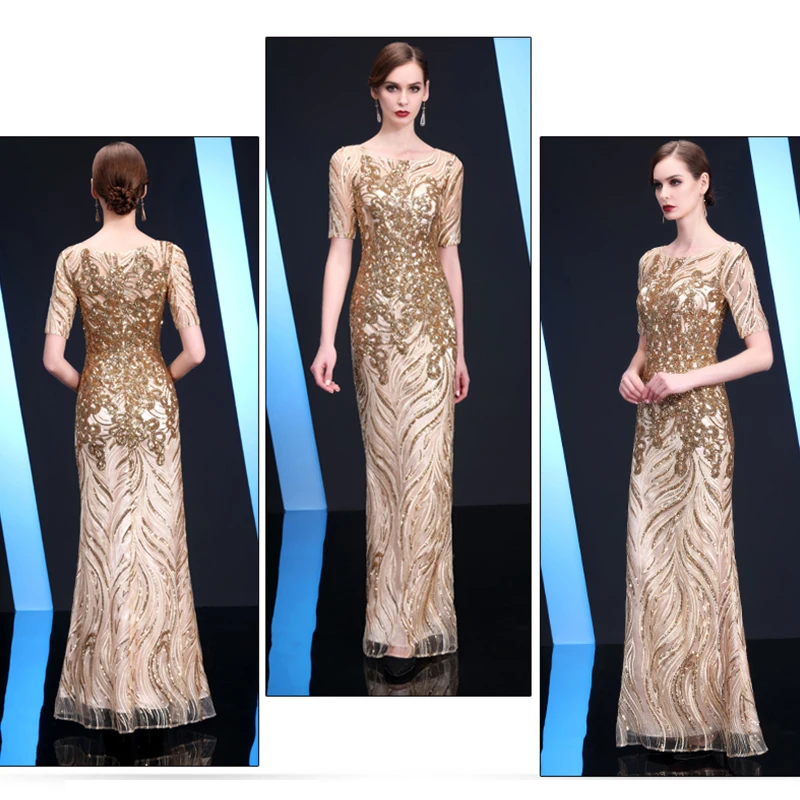 Jancember LC06 Gold Beading Machine Cheap Mother Of The Bride Evening Dress