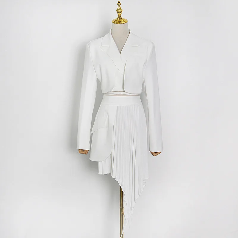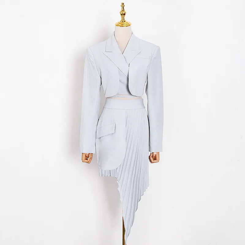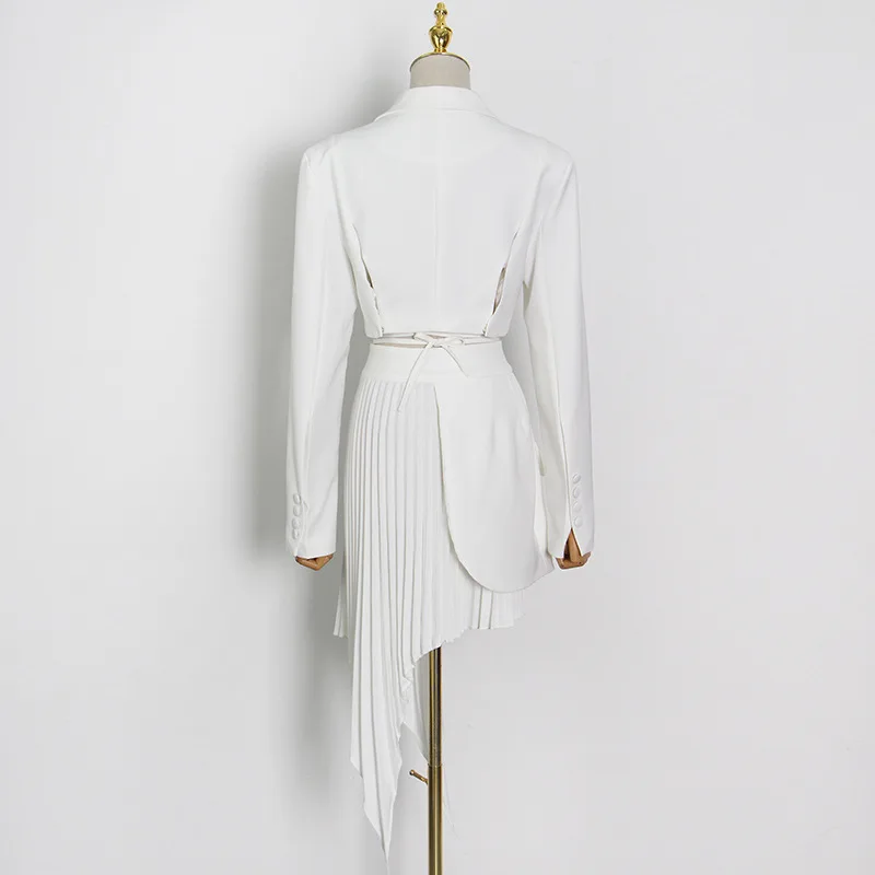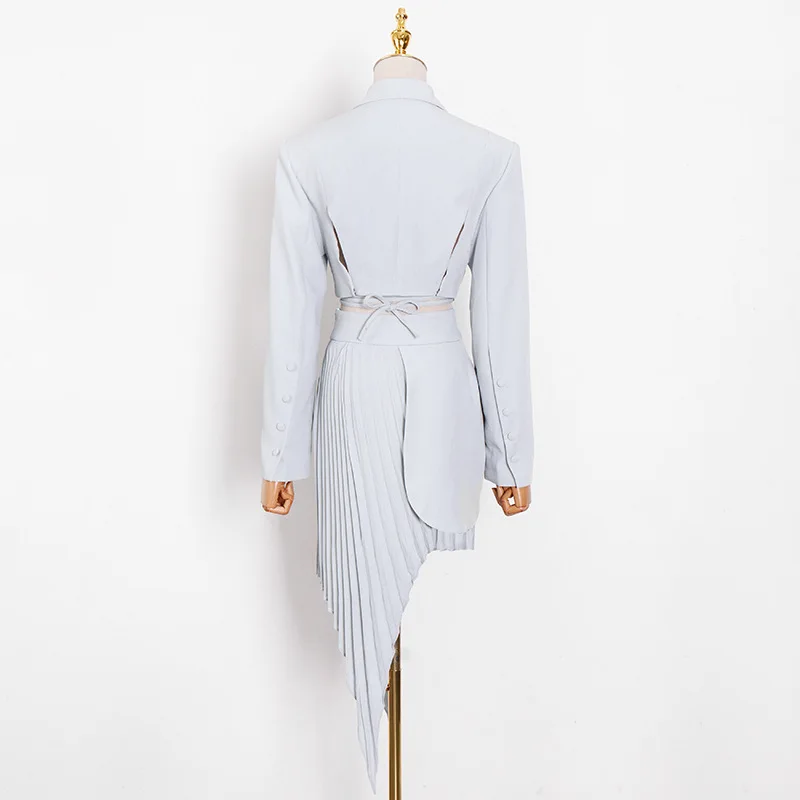 JANHE vestid Office Ladies Long Sleeve Pleated Pant Skirt Two Piece Set Casual Blazer Jacket Top Women Clothing Blazer Dress