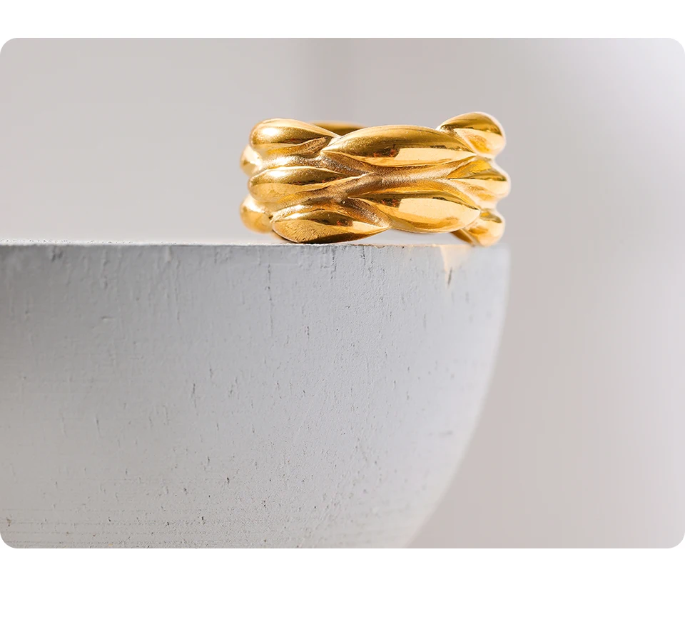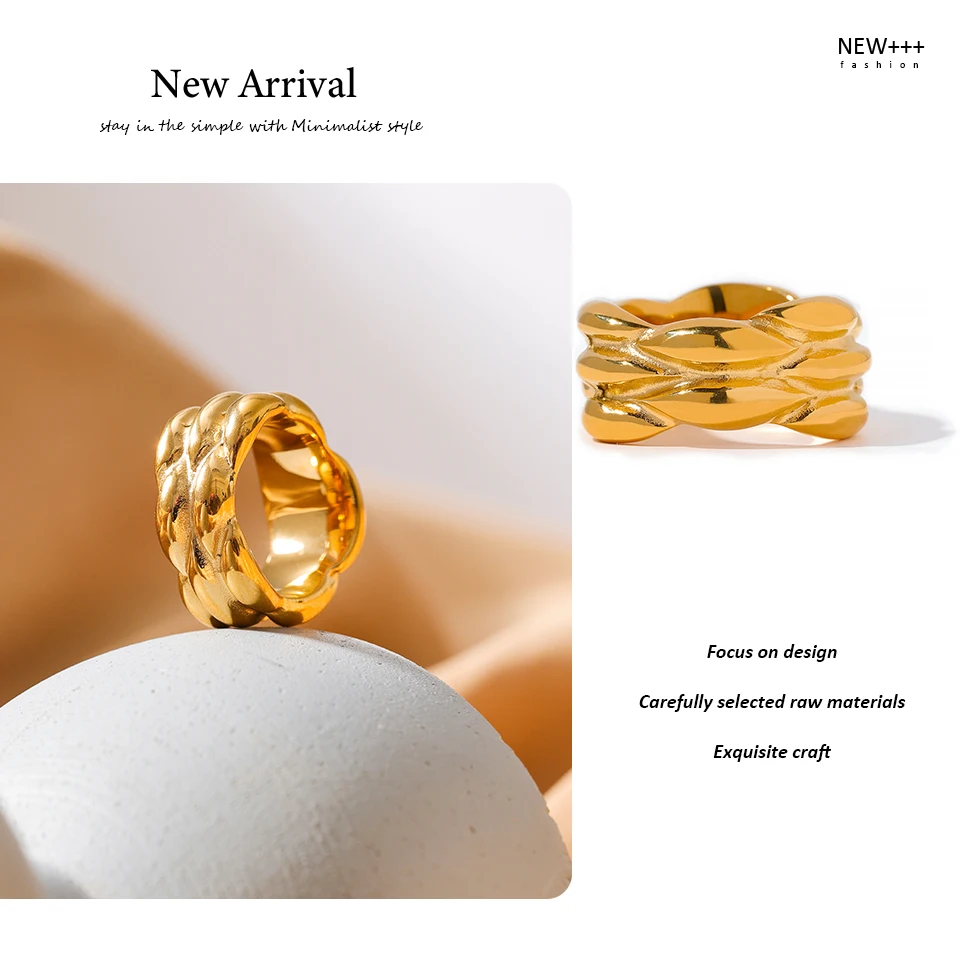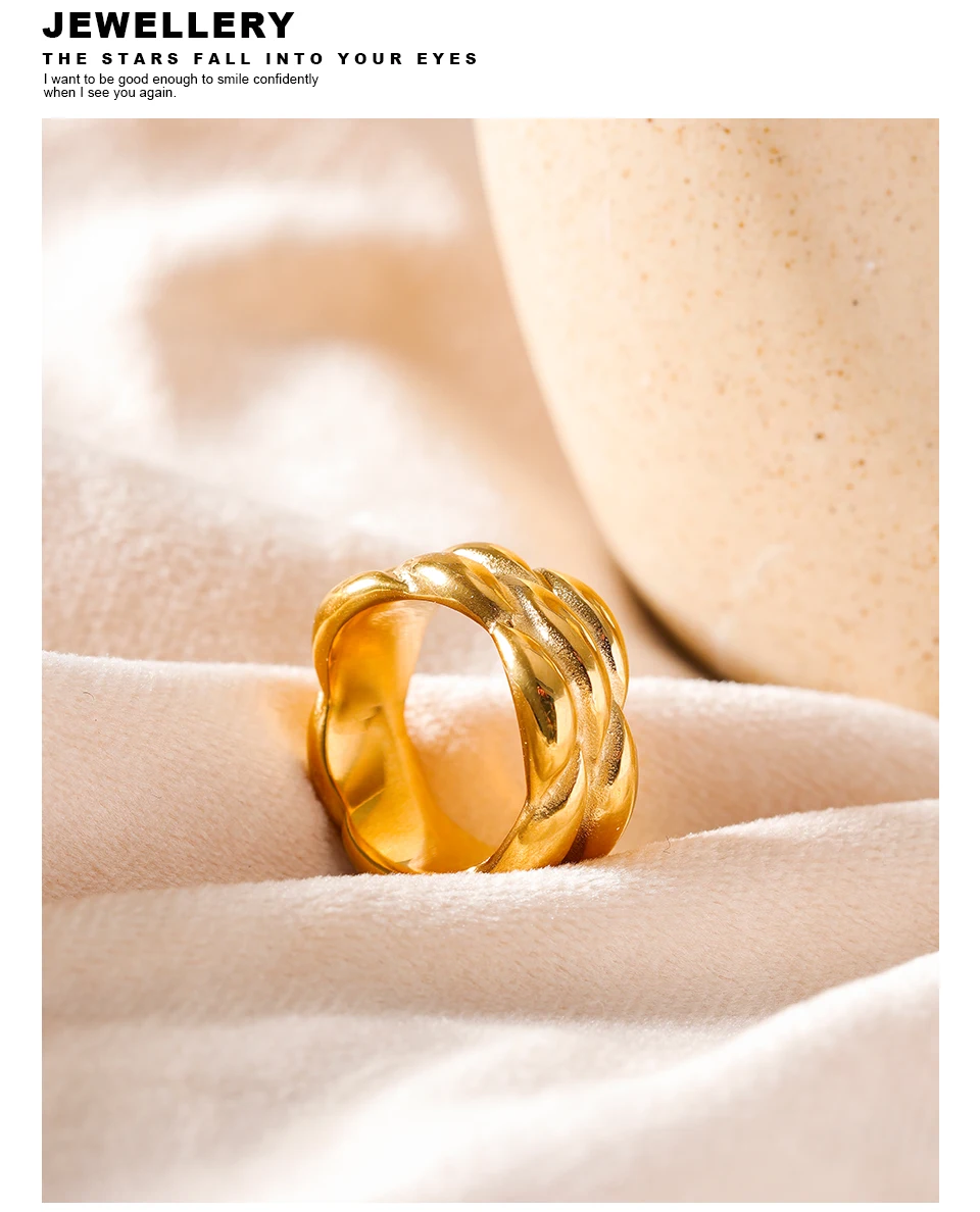 JINYOU 1888 Wholesale Waterproof 18K Gold Color Stainless Steel Texture Ring Charm Metal Statement Fashion Chic Jewelry Women