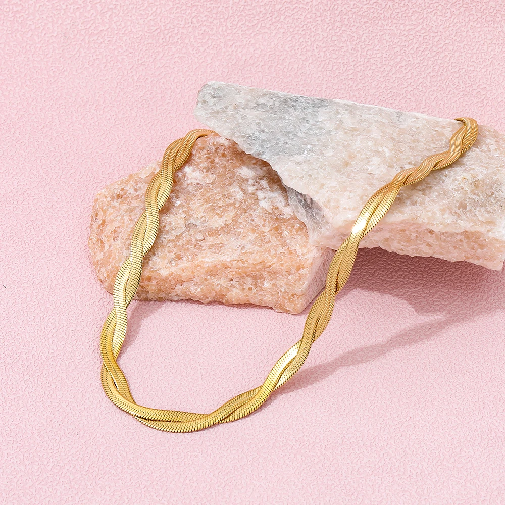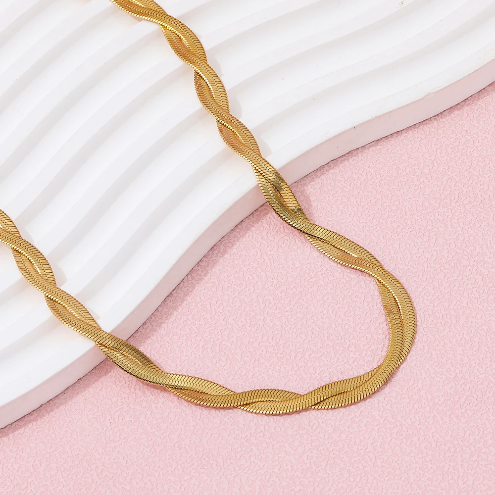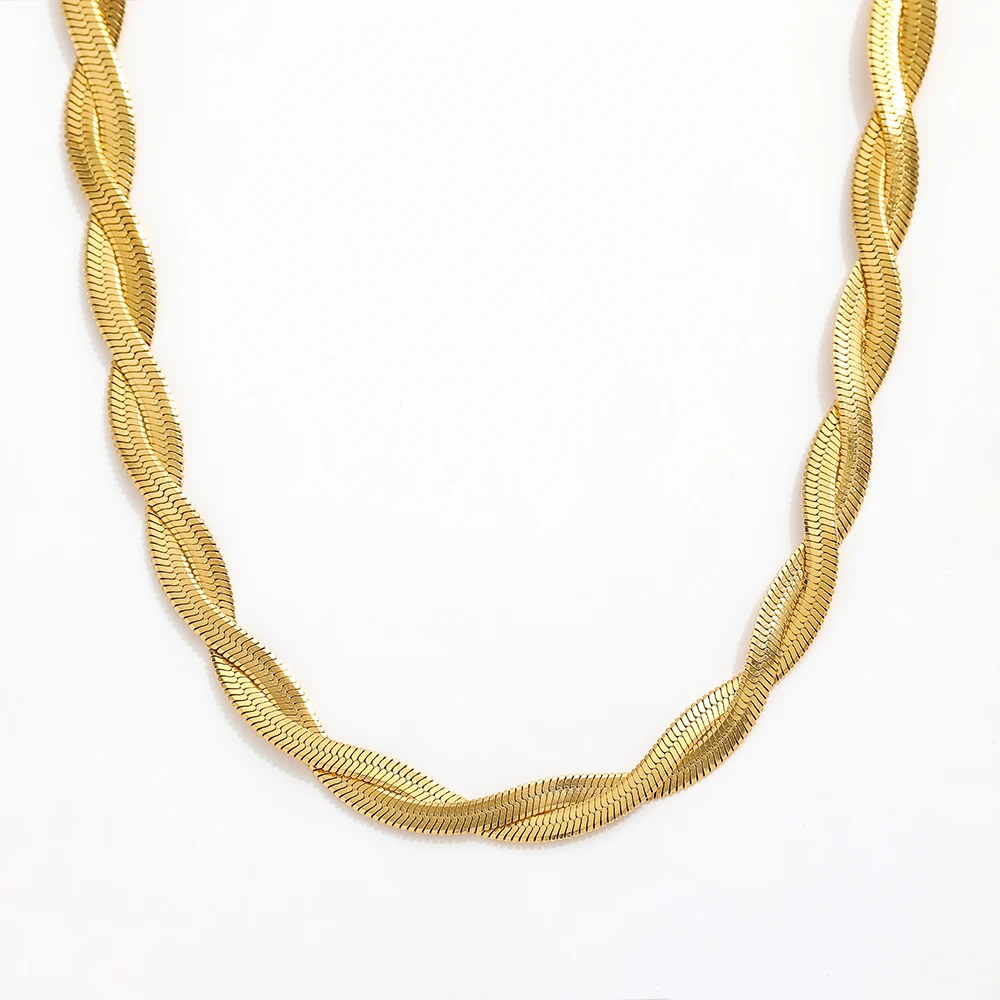 Joolim Jewelry 18K Gold Plated Twisted Snake Chain Necklace Stainless Steel Necklace Trendy Jewelry