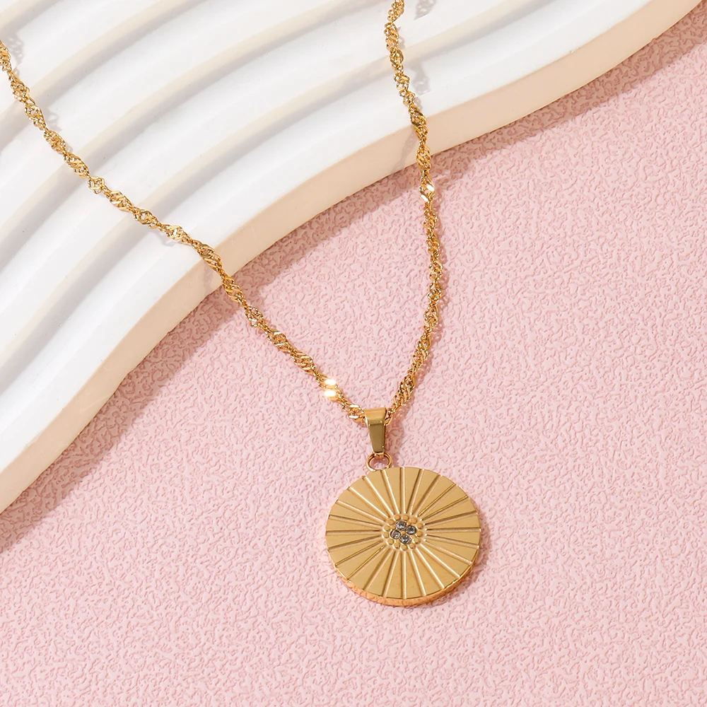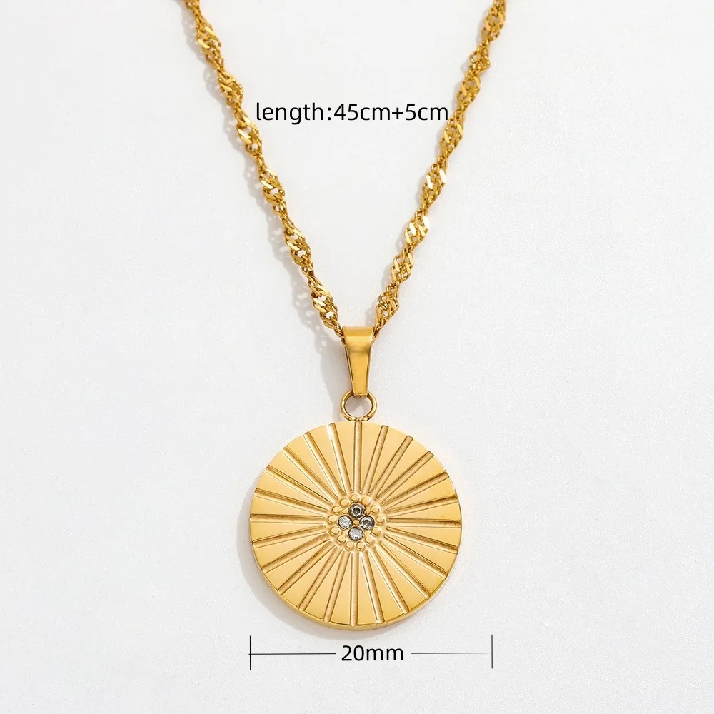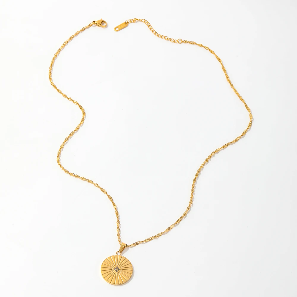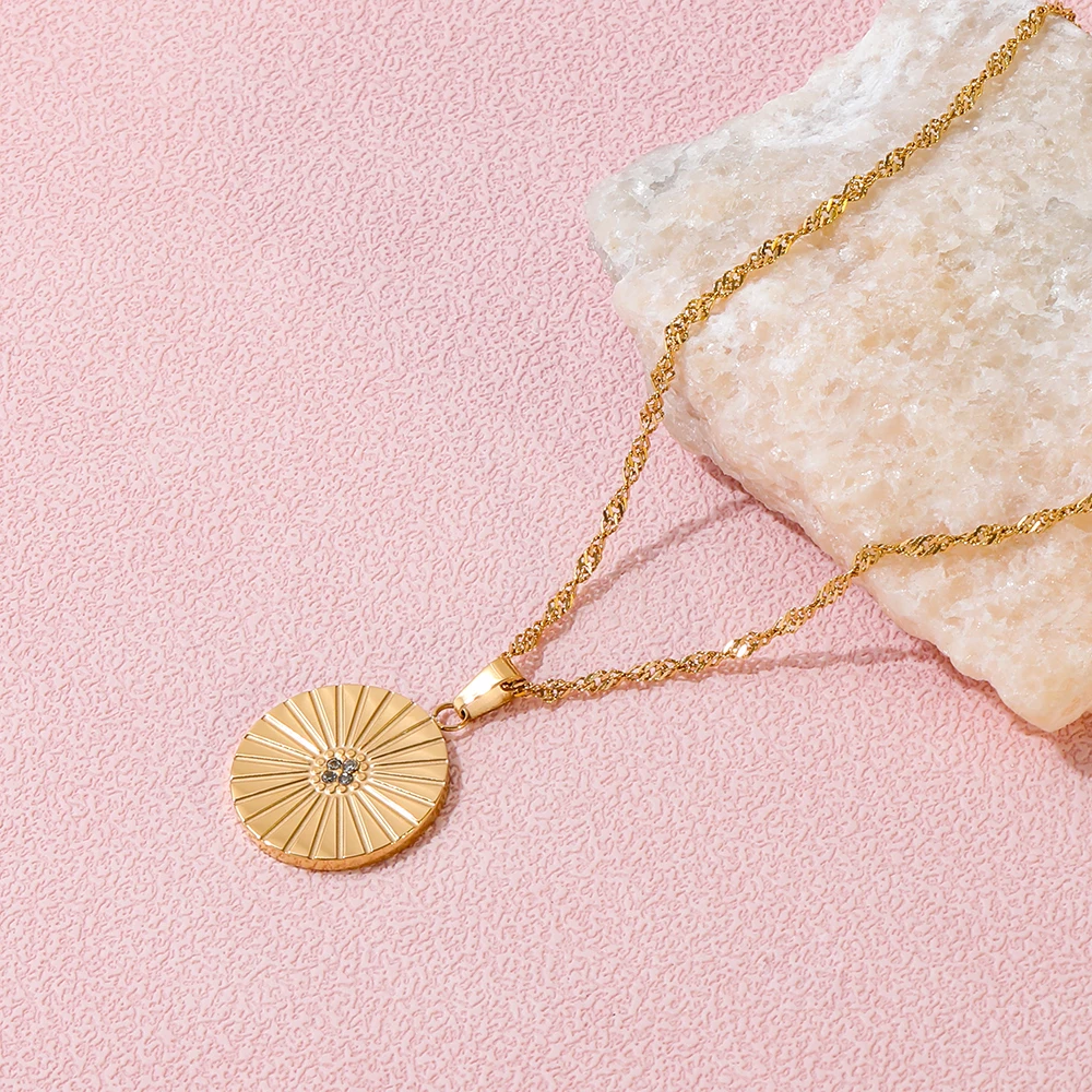 Joolim Rope Chain Dainty Zirconia Burst Circle Round Coin Pendant Stainless Steel Necklace Jewelry Wholesale