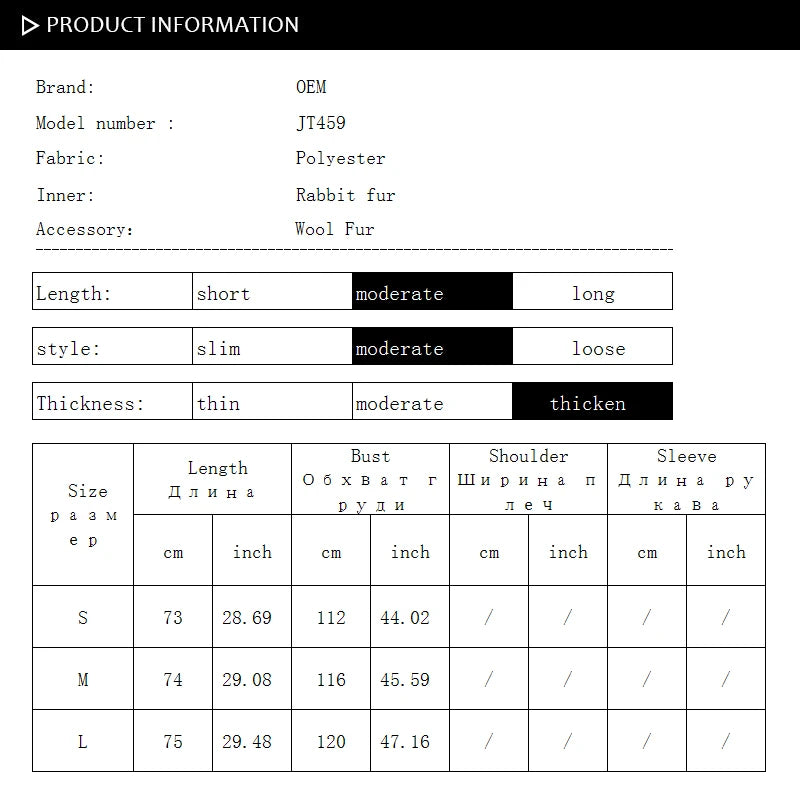JT459 Whole Skin Rabbit Fur Warm Coat Female Sheep Curly Hair Collar Winter Young Mid-length Jacket
