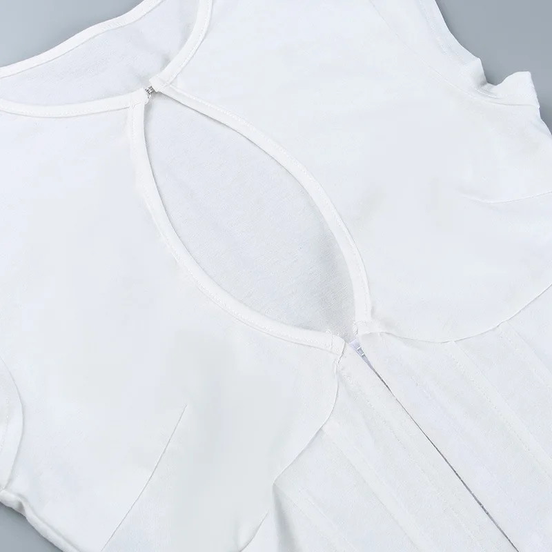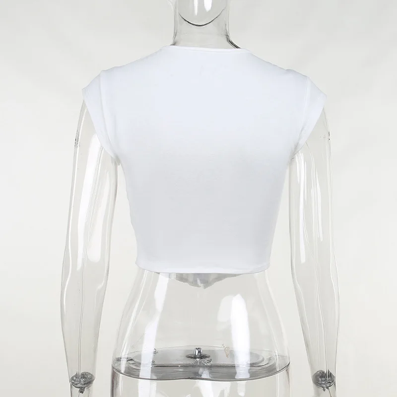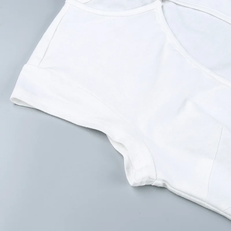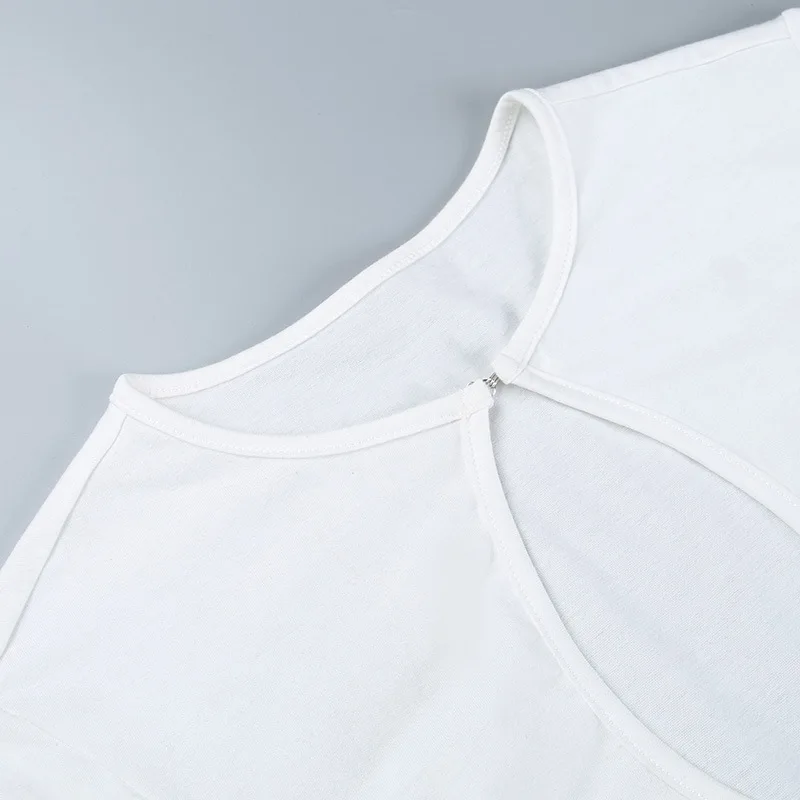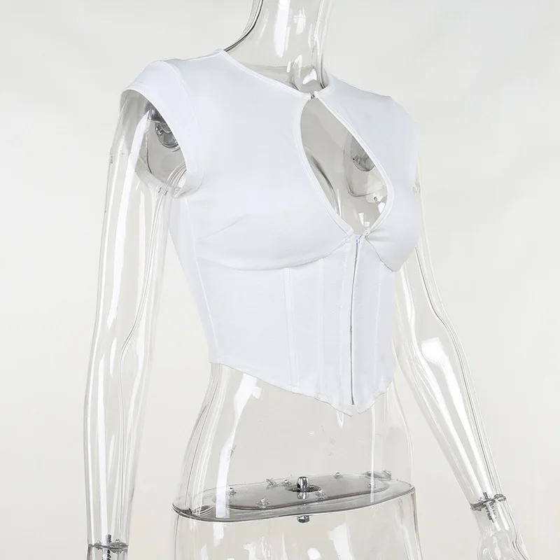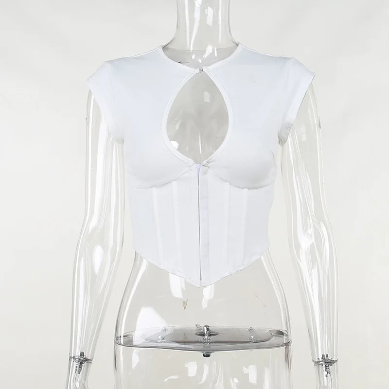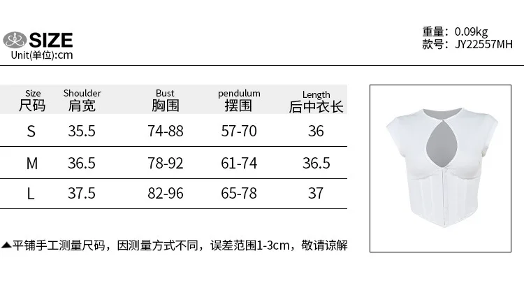 JY22557 Women's Tank Tops Sexy hollowed-out waist round neck short sleeve street fashion spice Girl slim solid color blouse