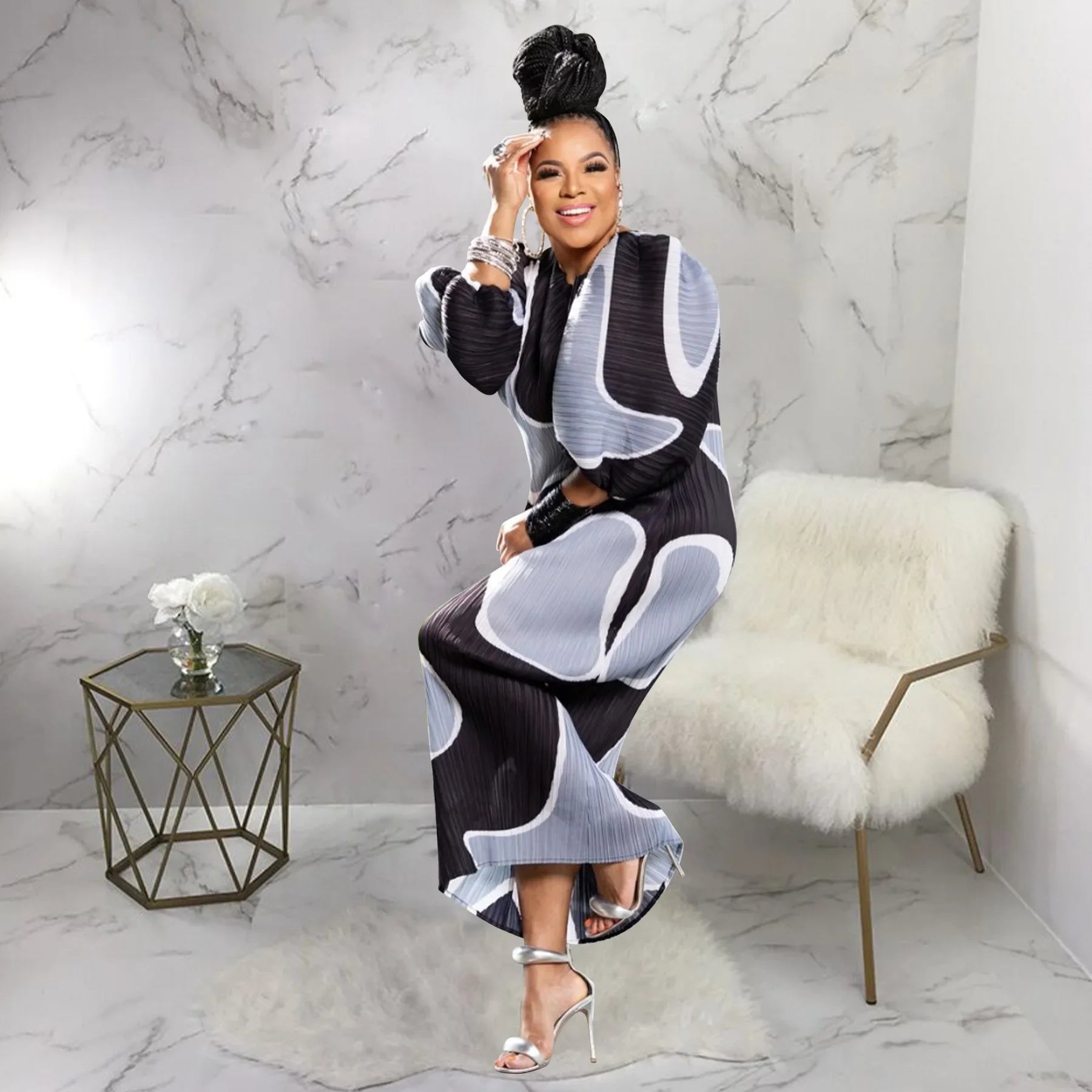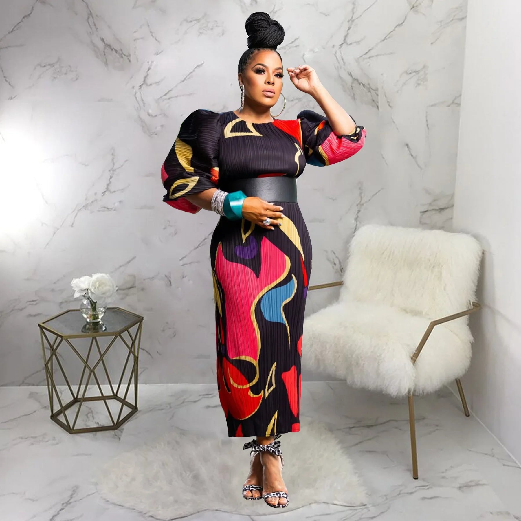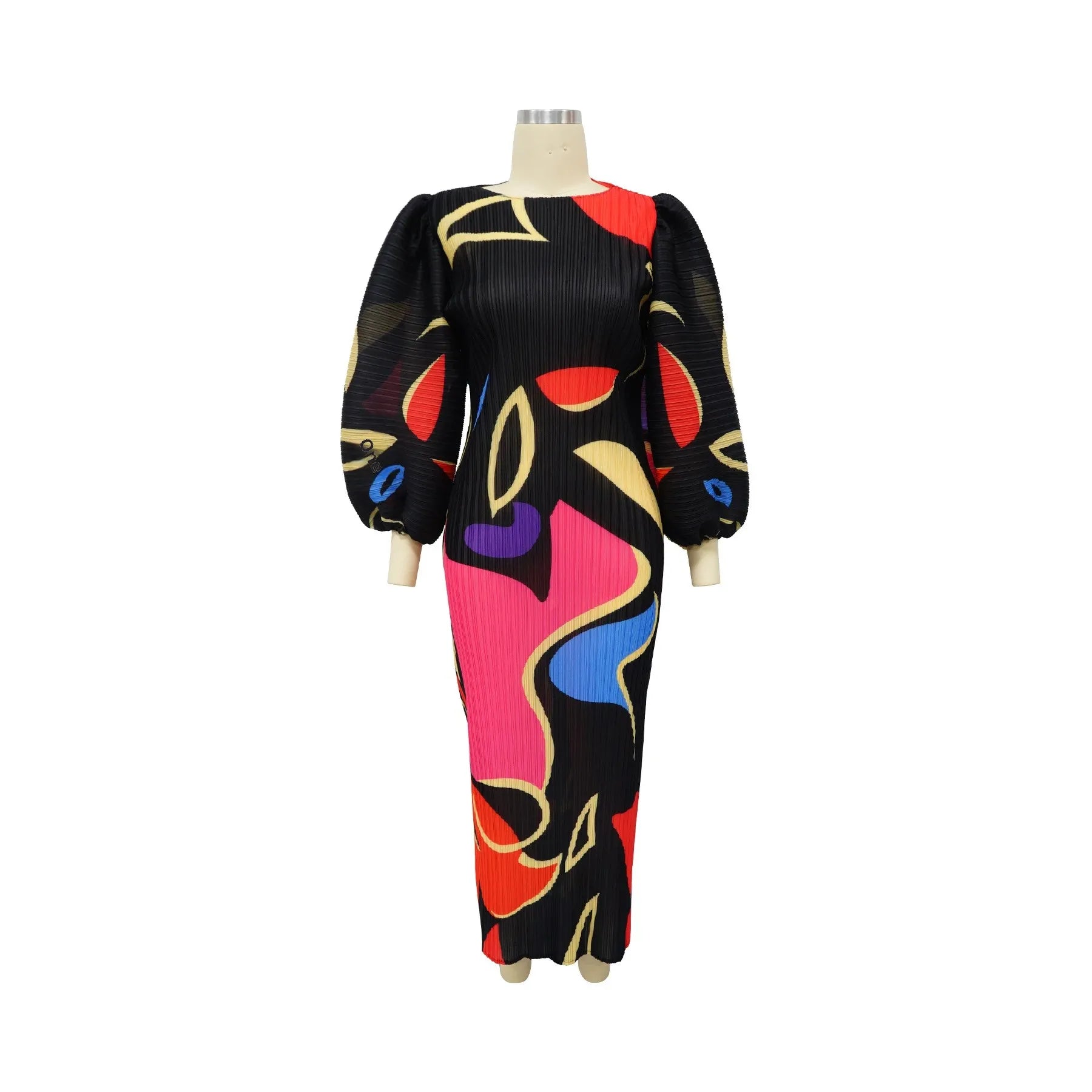 K10783 Cross-border Supply Amazon Fashionable Women's Clothing European American Style Lantern Sleeve Pleated Dress