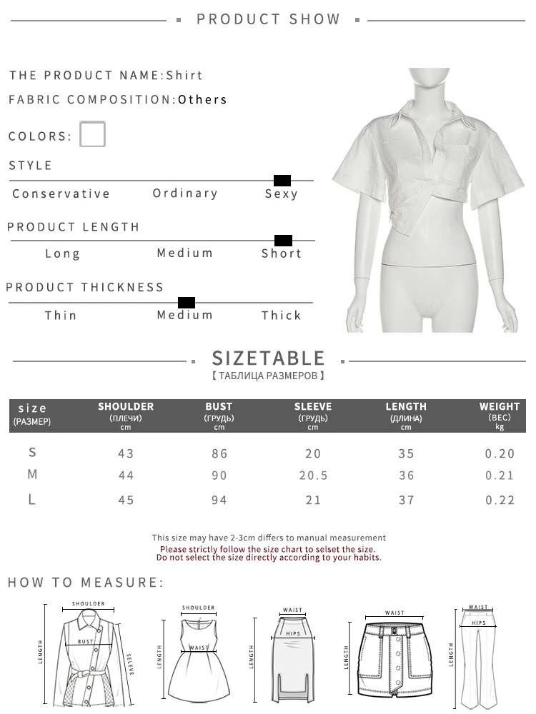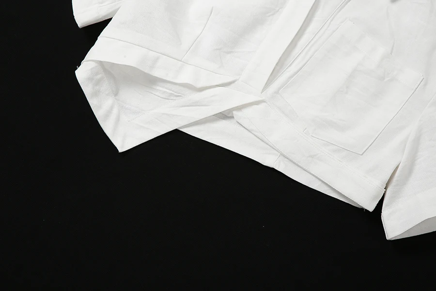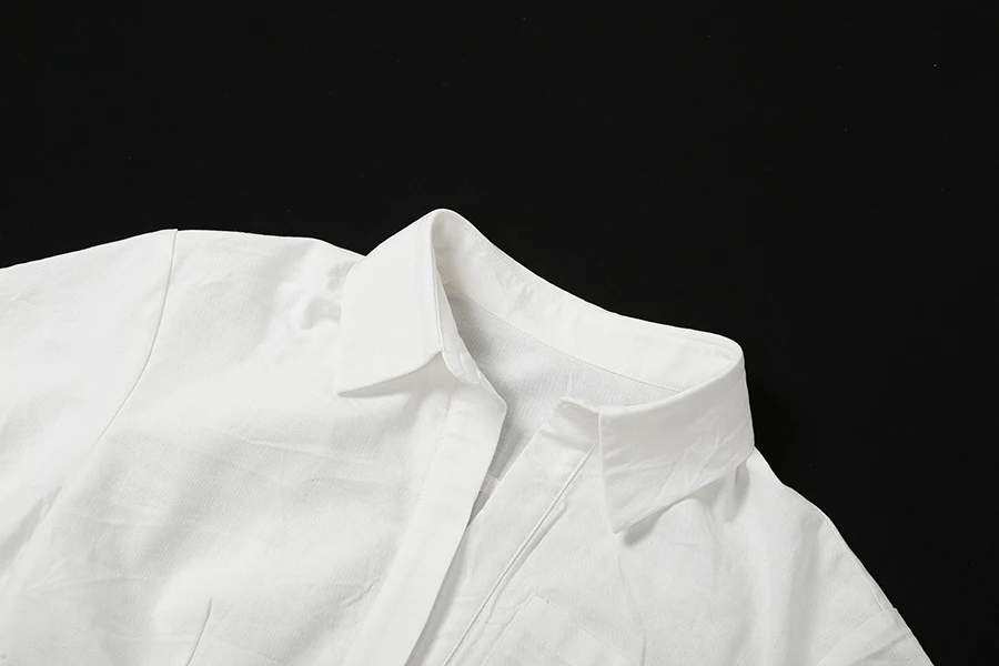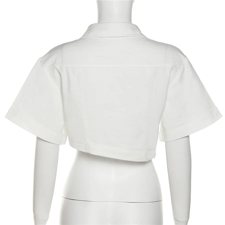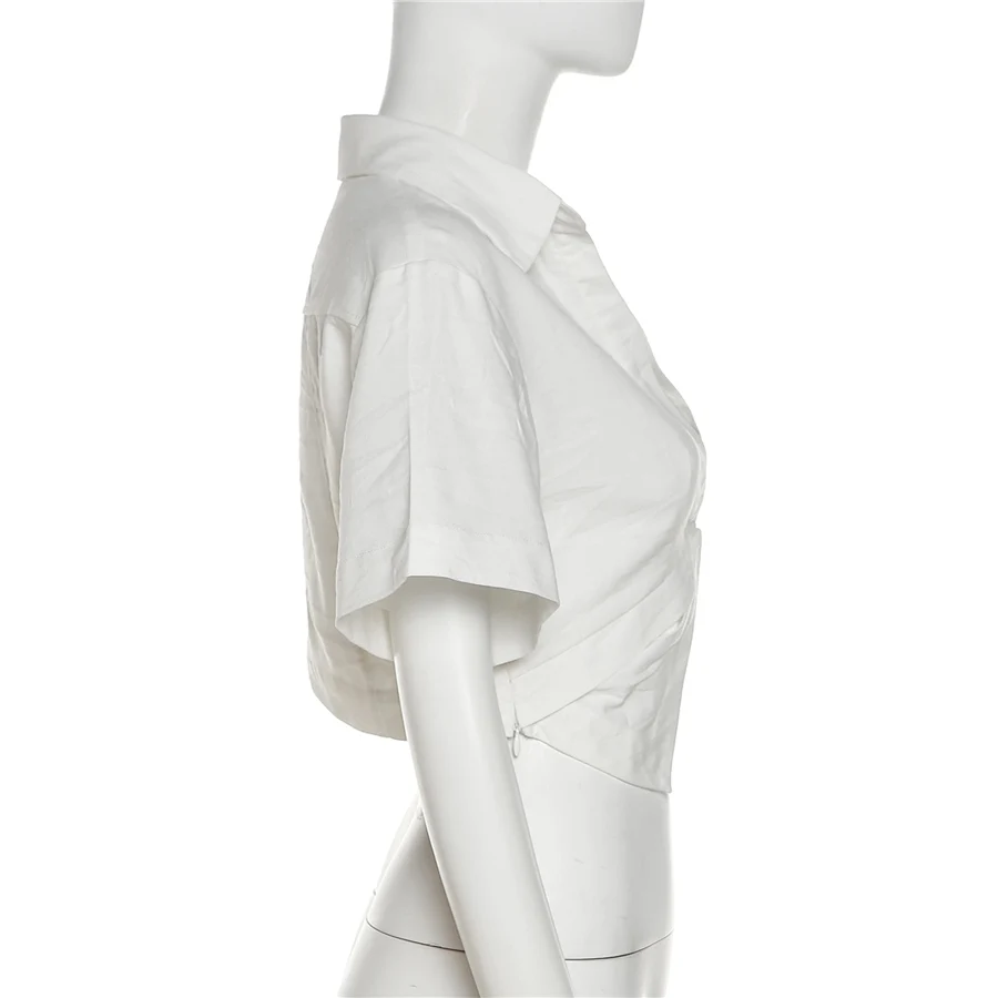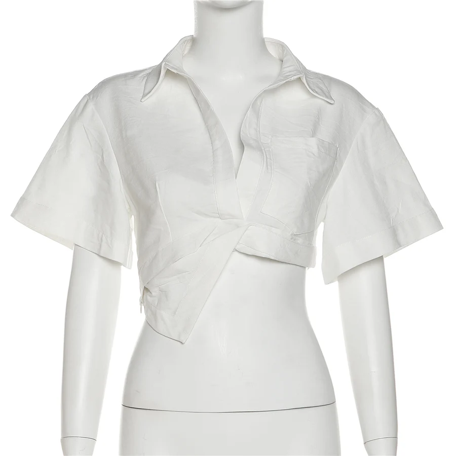 K22L18254 Solid Color Casual Tops Cropped Irregular Shape Women White Shirt