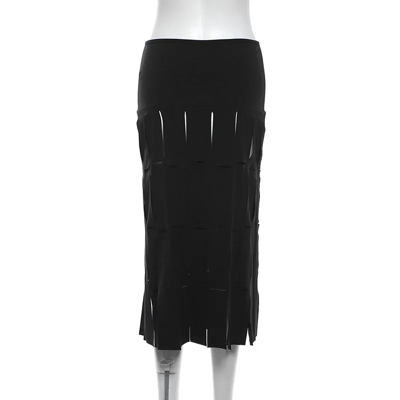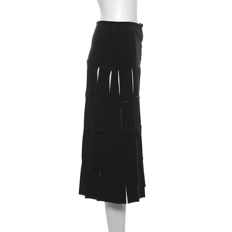 K23j39543 Autumn 2024 New Hole See Through High Waist Skirt Solid Loose Casual Outfit Streetwear Fashion Skirt For Women