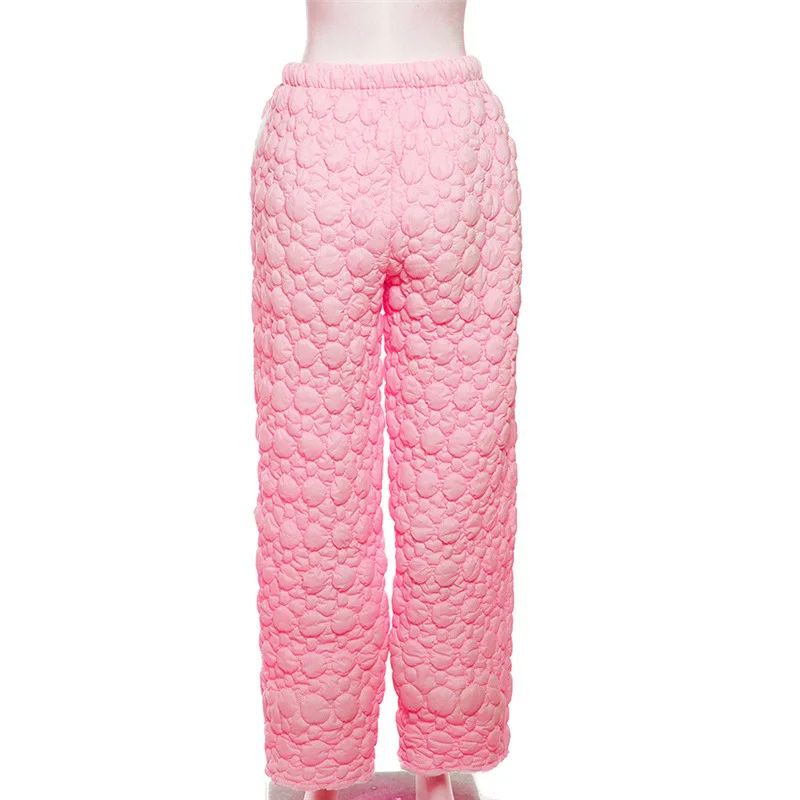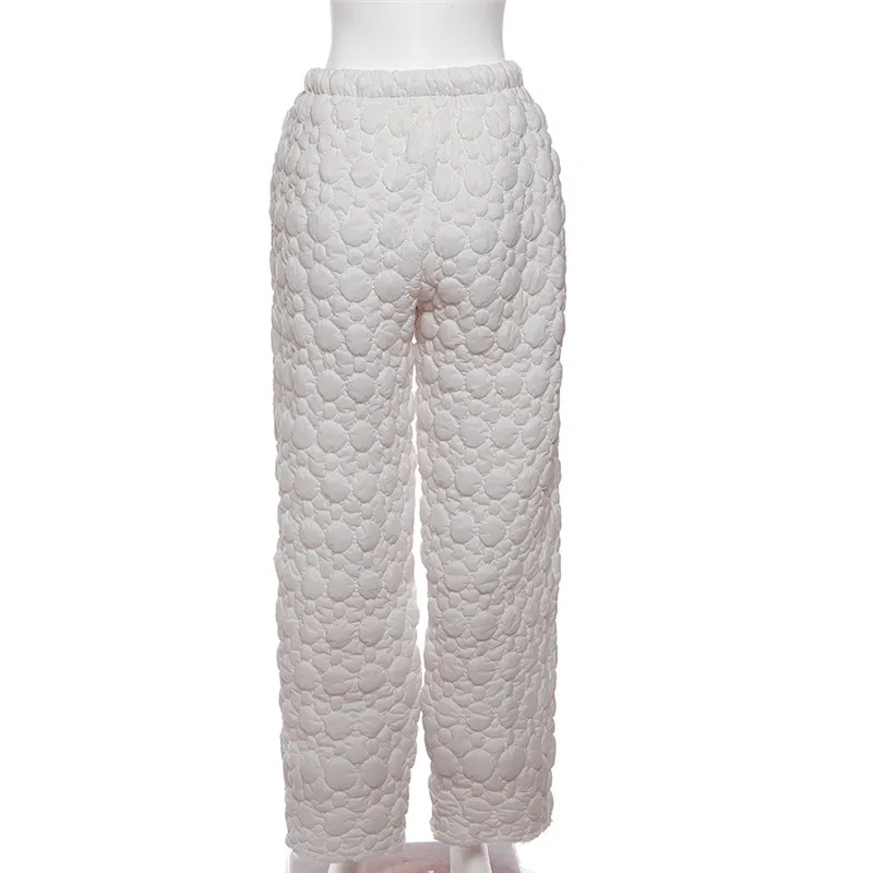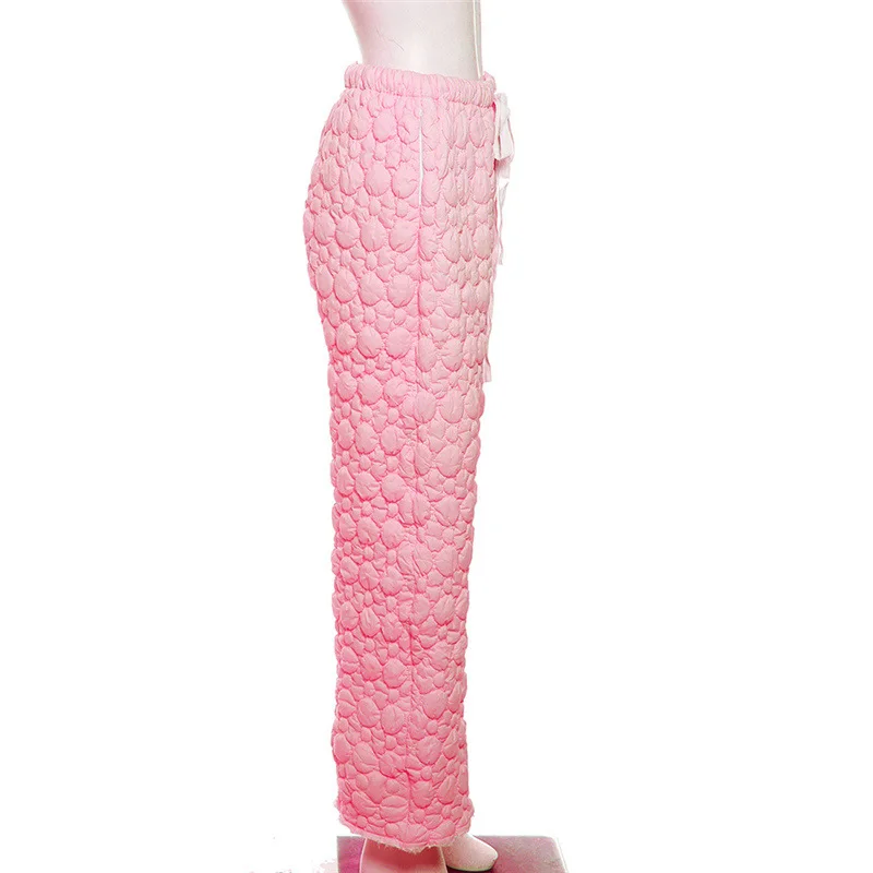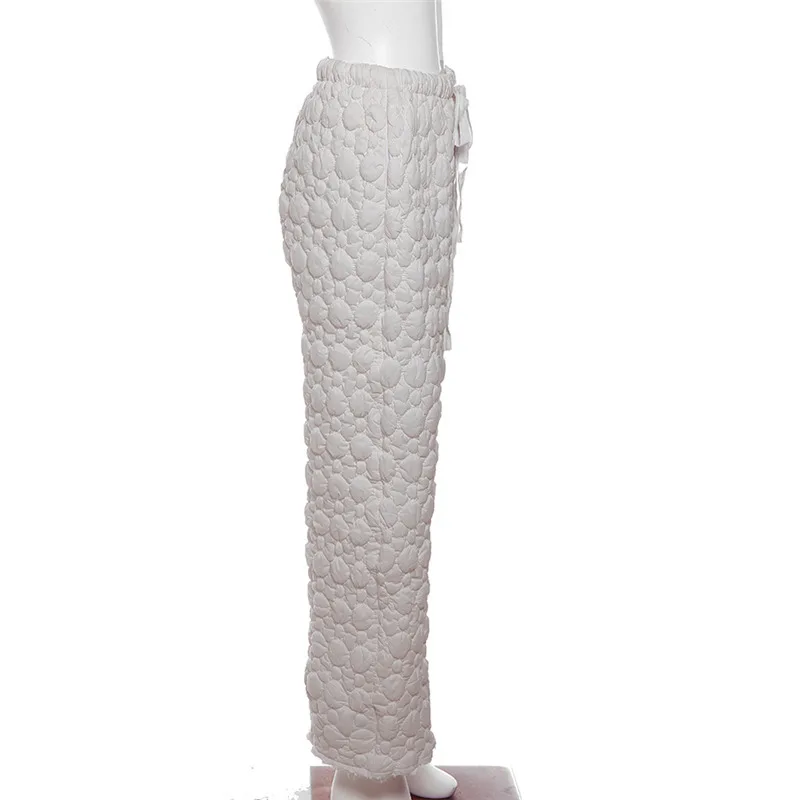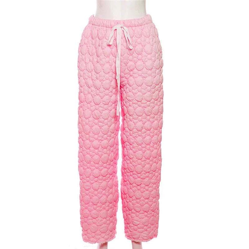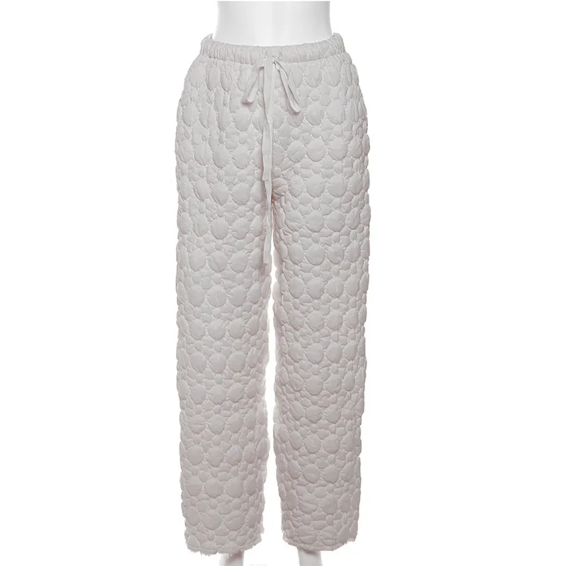 K23p38239 Fashion Autumn Winter Pants Solid Drawstring Trousers Embroider Pull-on Loose Straight Maxi Trousers For Women