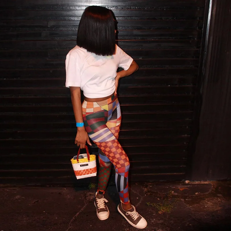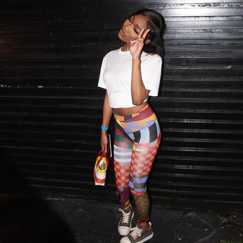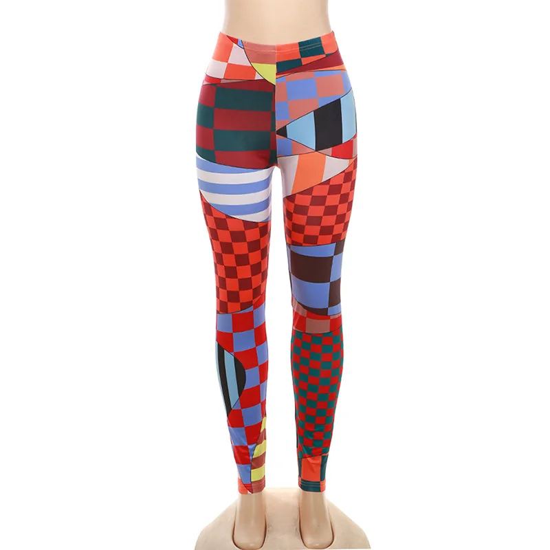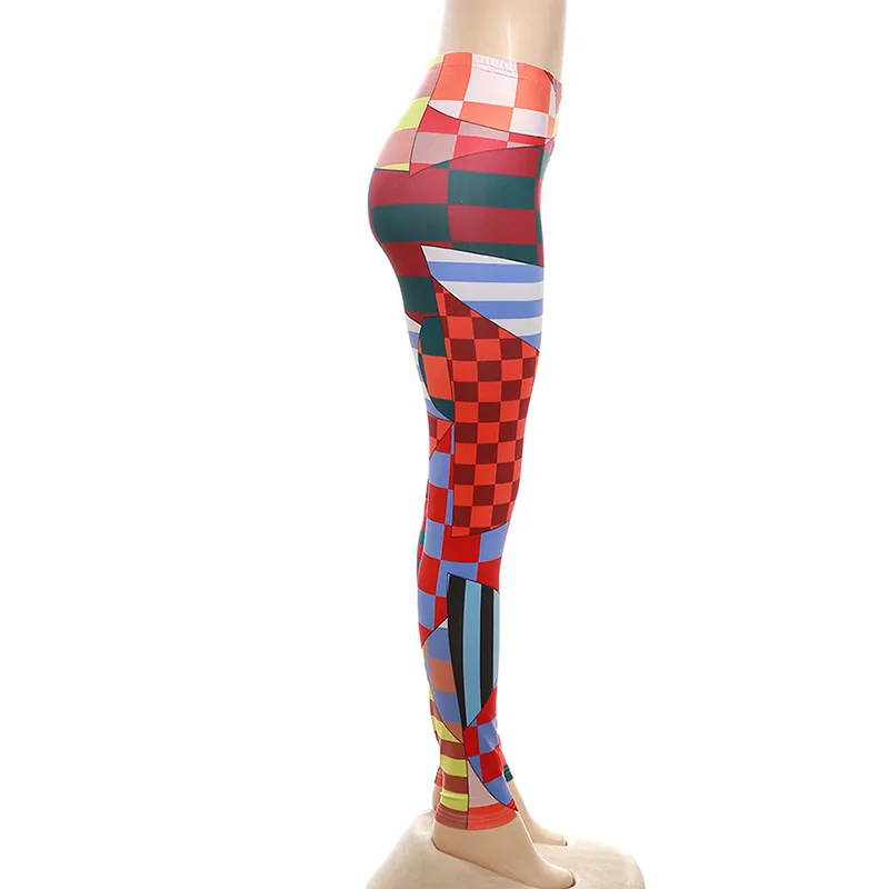 K23P40179 Digital Print Patchwork Skinny Mid Waist Bottoms