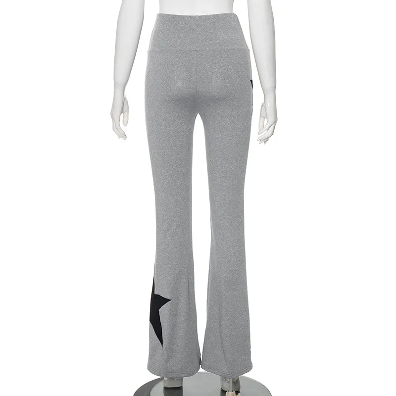 K23pt526 Autumn Winter 2023 New Pentagram Patchwork High Waist Flared Pant Solid Bodycon Casual Trouser For Women Lady