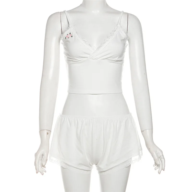 K23S41600 New 2024 Casual Sleeveless Crop Top And Mini Pants 2 Piece Set Bodycon Sexy Fashion Hollow Out Women's Set