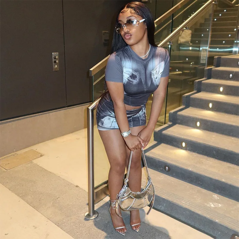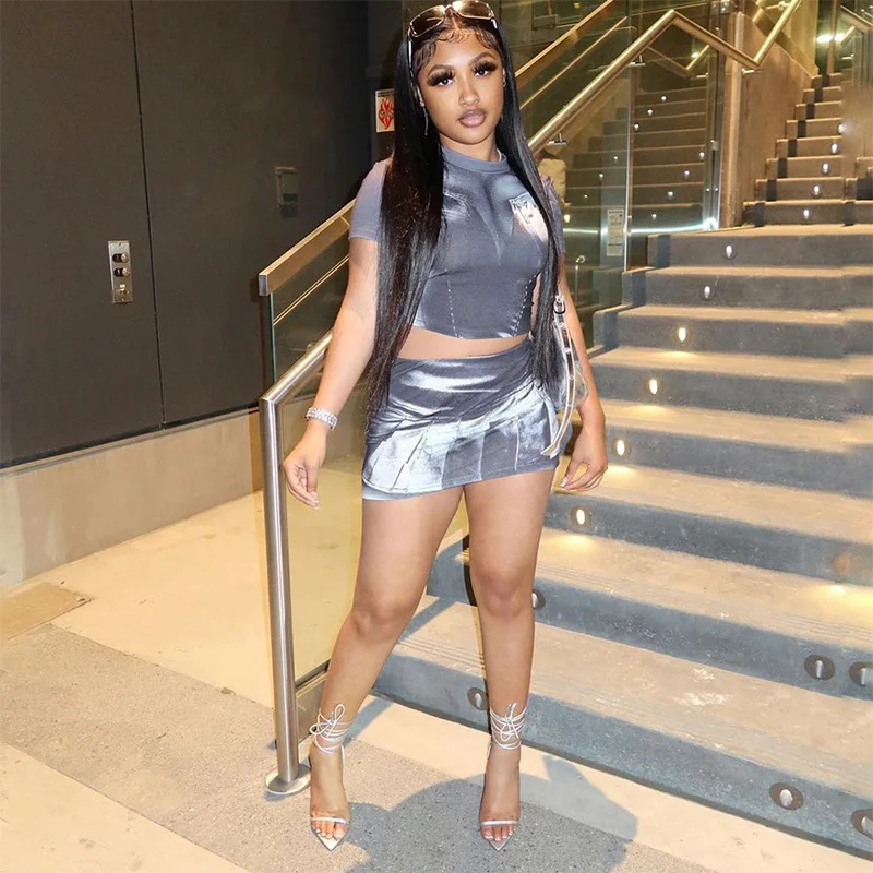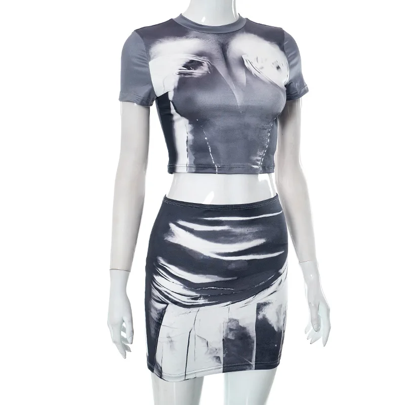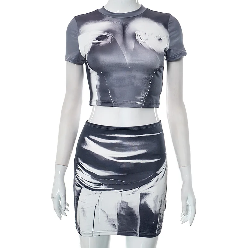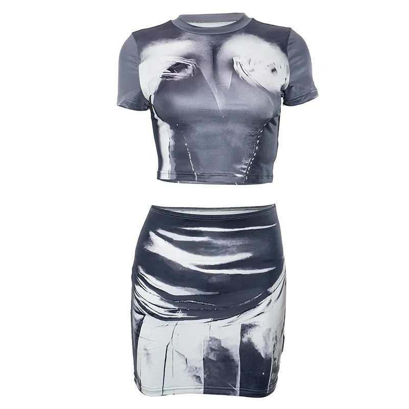 K23ST178 Summer Sexy Short Sleeve T-Shirt Irregular Skirt Letter Print Women's Two Piece Skirt Set