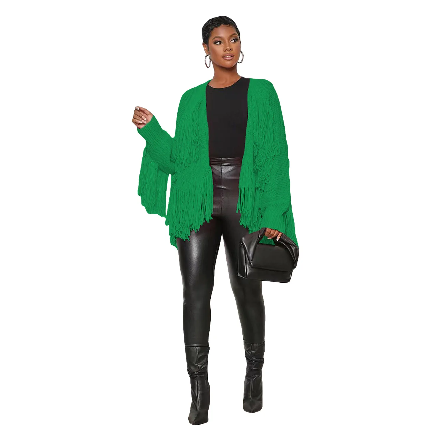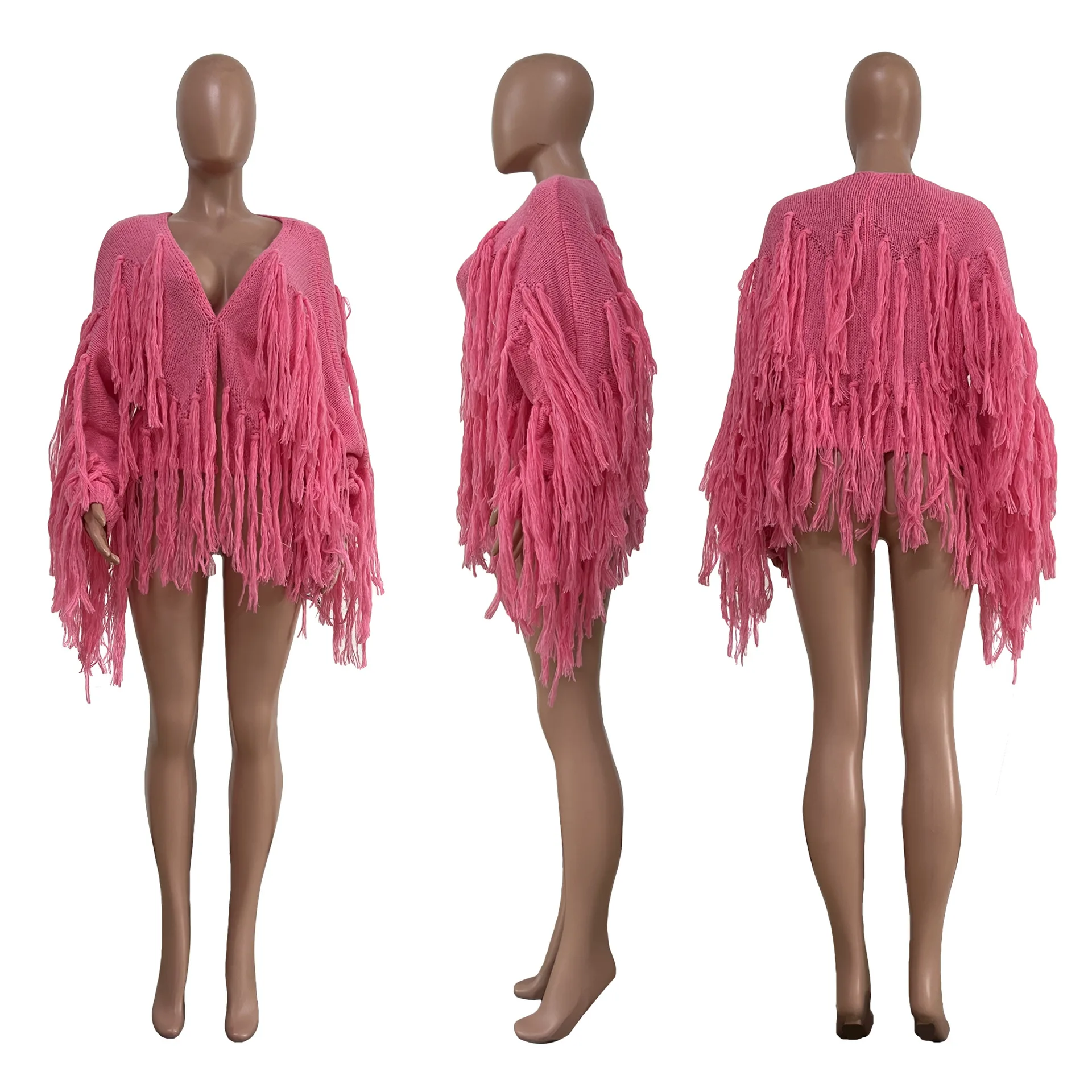 KaiChen 2023 New Arrivals Knitted Sweater Cardigan With Tassels Fringe Women Fashion Color Fall Jacket Stylish Streetwear