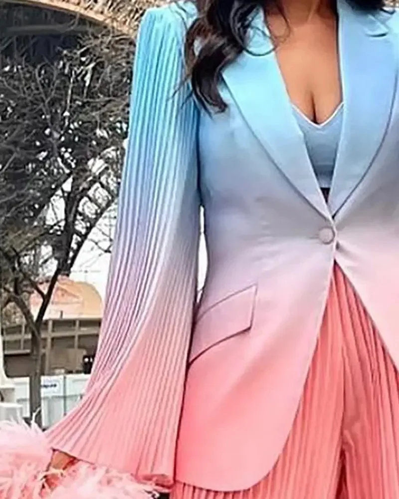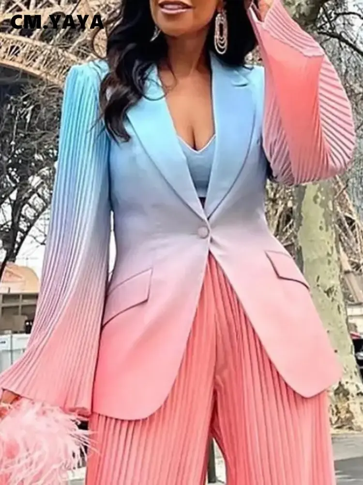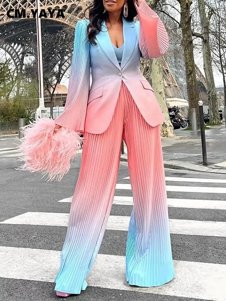 KaiChen Elegant Gradient Printed Suit for Women Pleated Loose Wide Leg Pants Set Chic INS Two 2 Piece Sets Outfits Femme