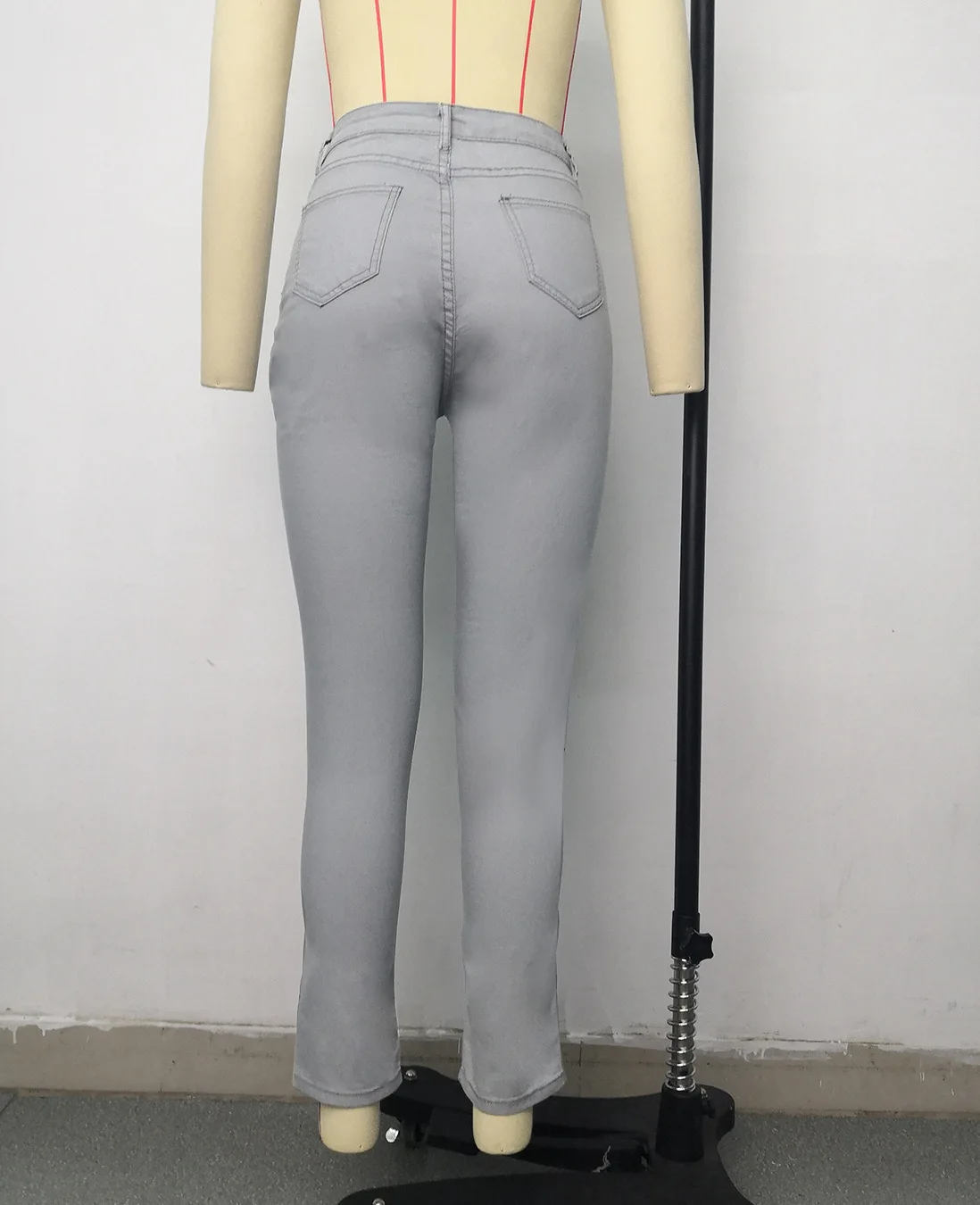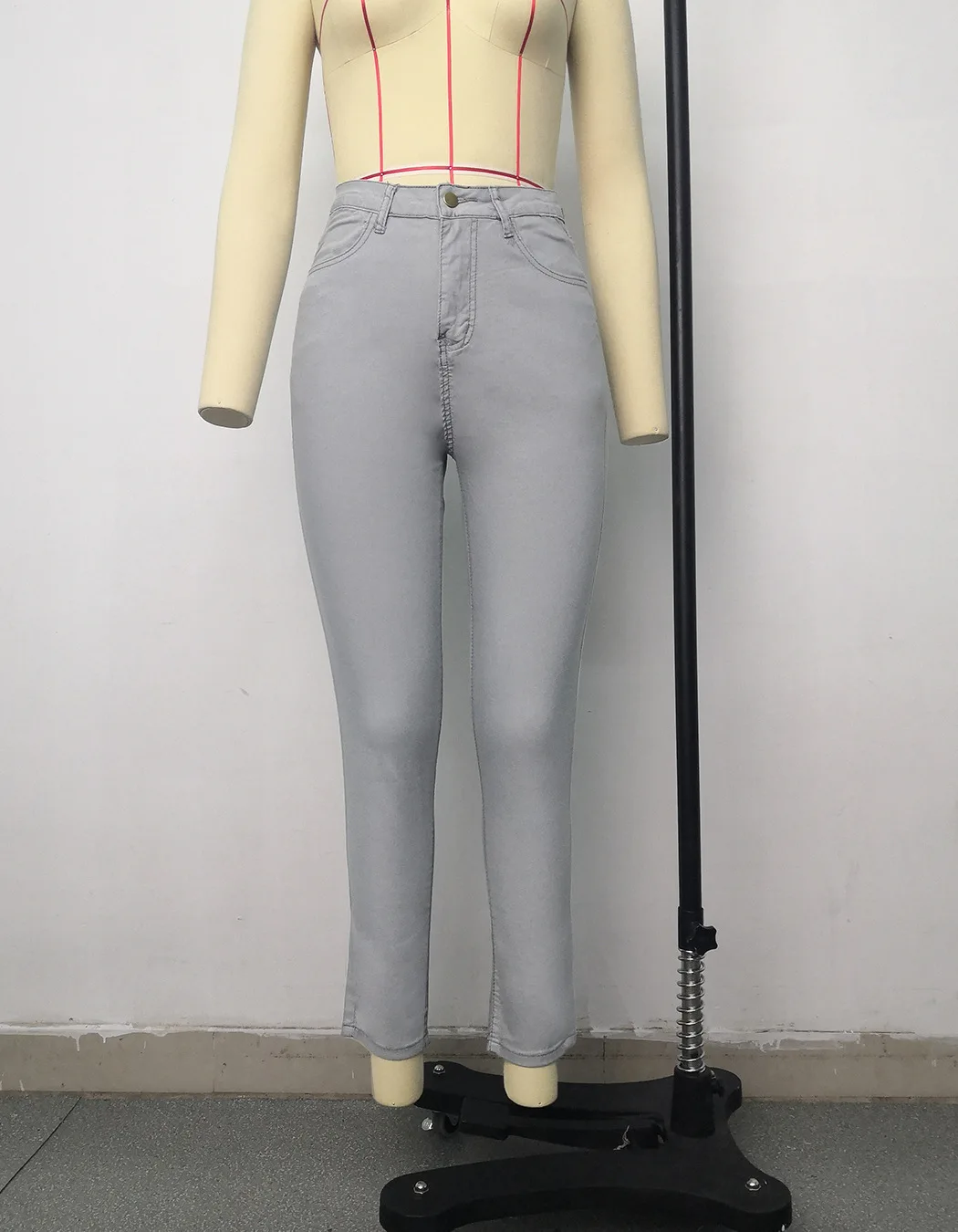KE0111RV Custom Private Label Vintage Letter Print High Waist Denim Bodycon Jeans Sehe Fashion