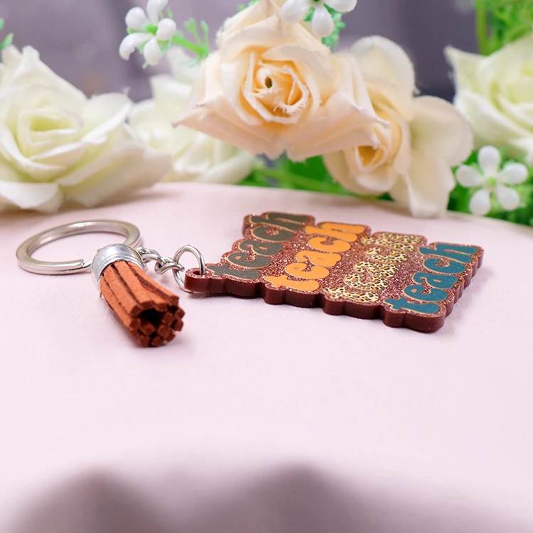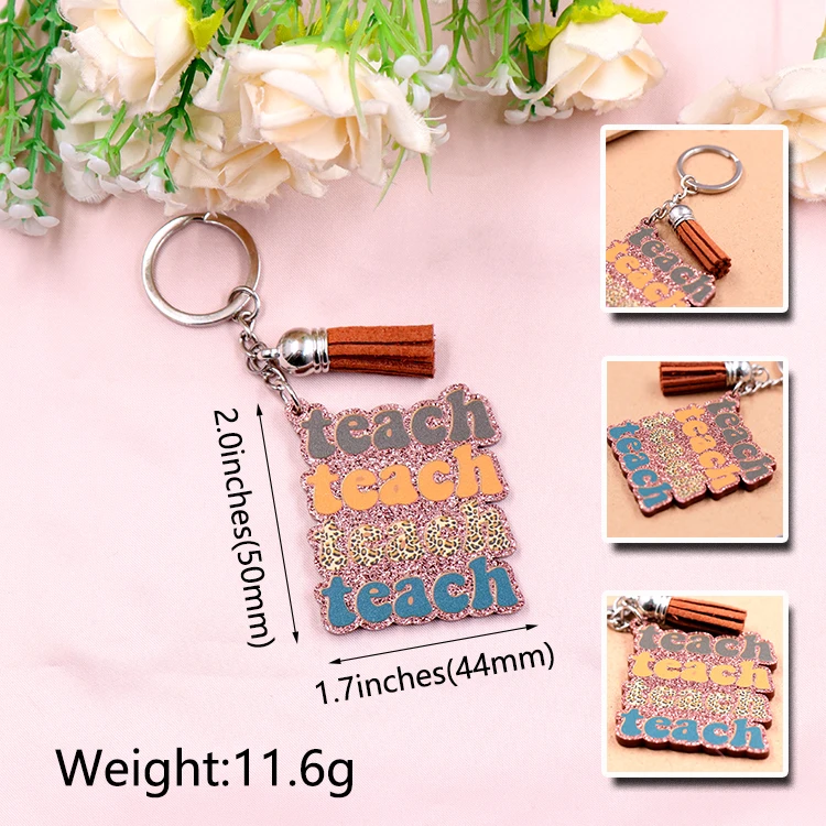 KHS220KH1125 2023 Hot sale fashion New Teach Keychain Teacher's Day Gift Glitter Acrylic Keyring