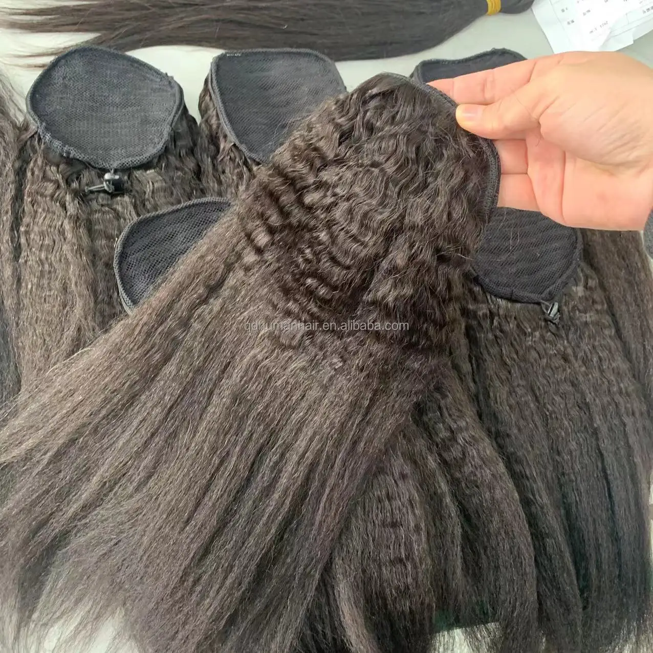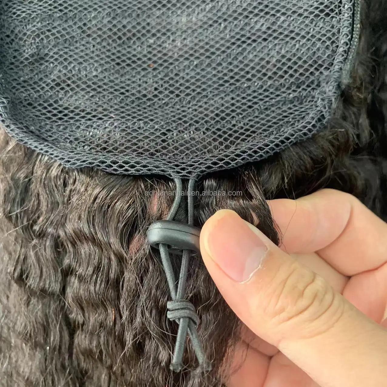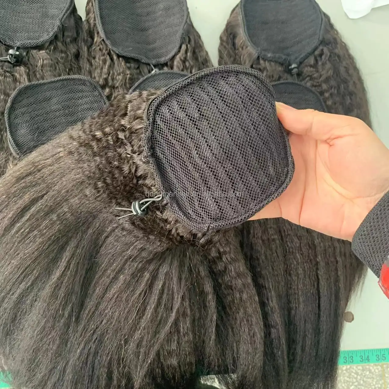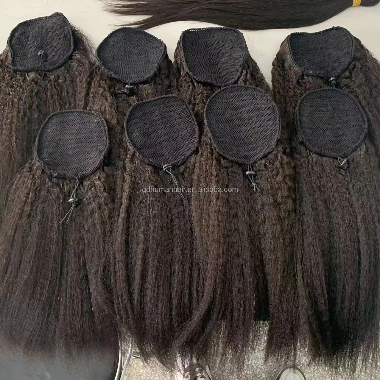 Hot Sale Indian Human Hair Kinky Straight Drawstring Ponytail For Black Women