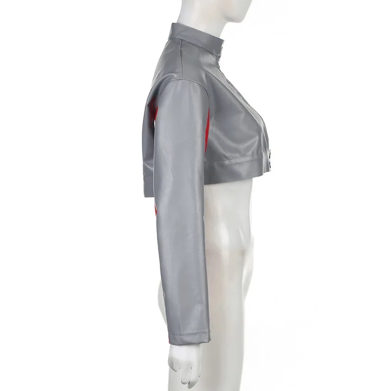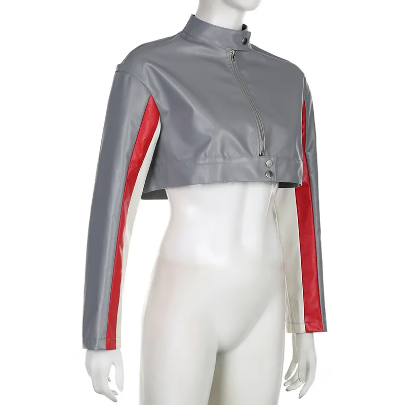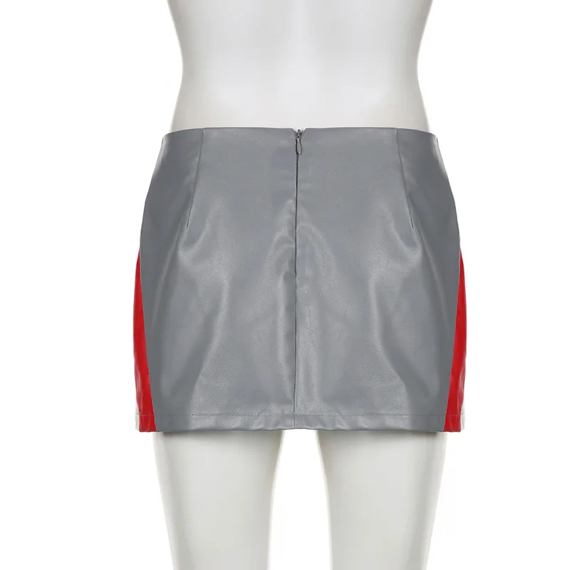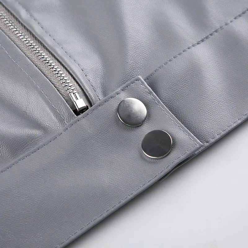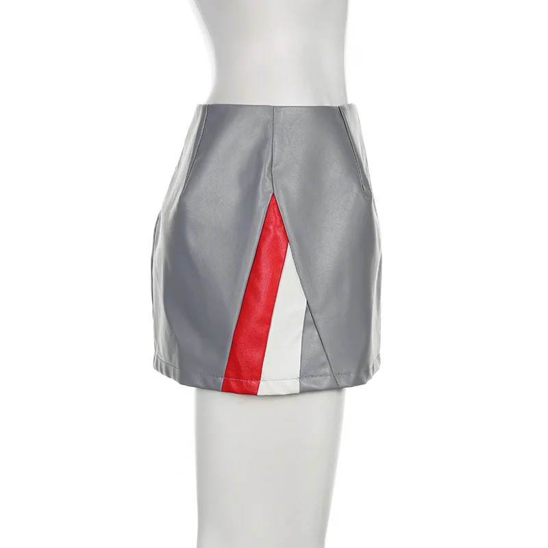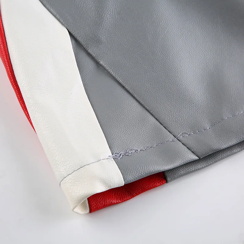 Kj07576 Sexy Motorcycle Style Women Two Piece Skirt Set Patchwork Zipper Short Jacket Wrapped Skirt Pu Leather 2pc Outfit