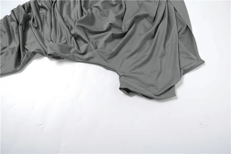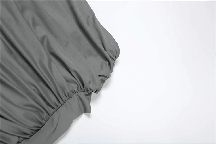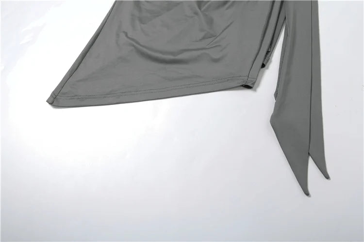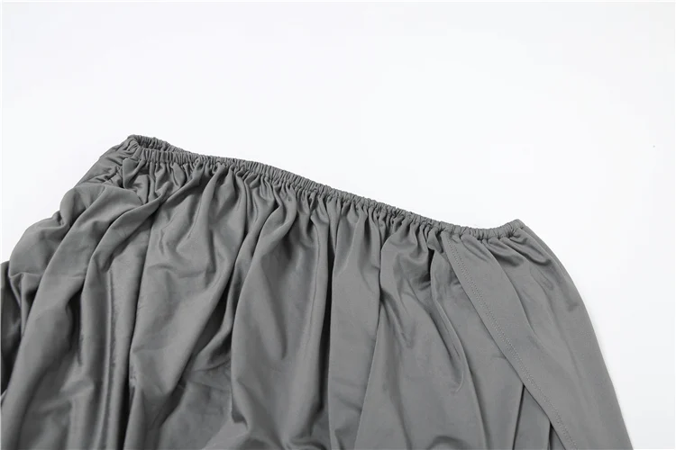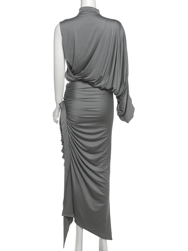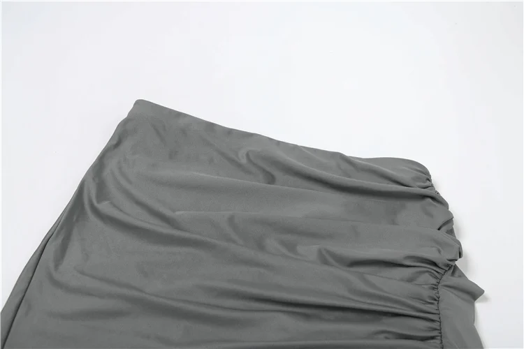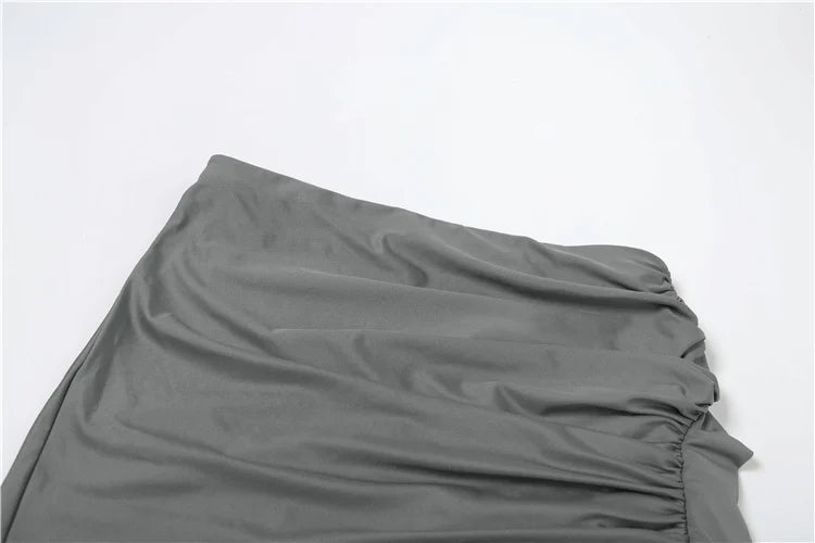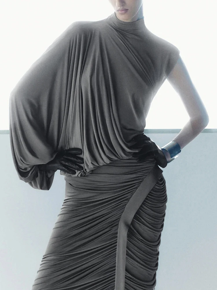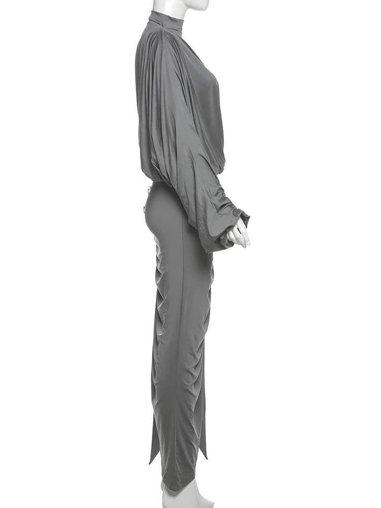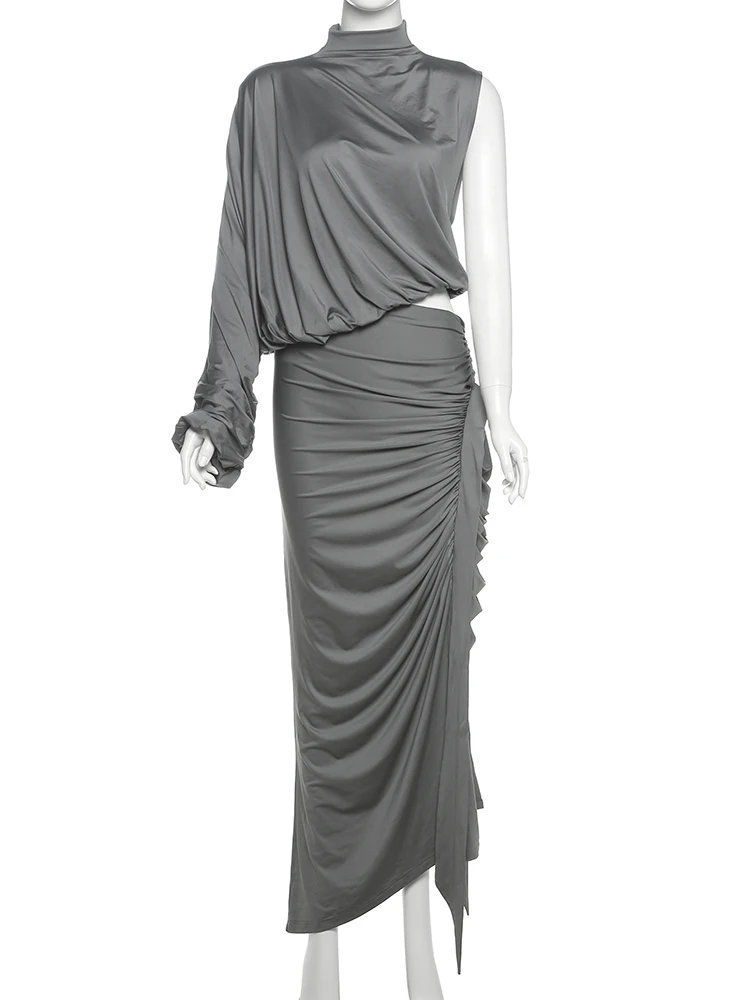 kliou Unique Irregular Women 2 Piece Set Solid Swinging Pleated Single Full Sleeve Turtleneck Tops+Matching Split Maxi Skirts