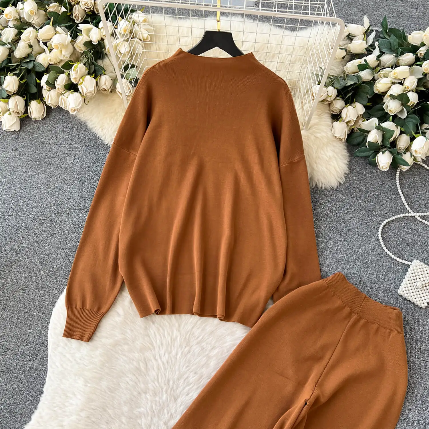 Knit Fashion Set Women's Autumn/Winter Loose T-Shirt + Long Pants With High Waist