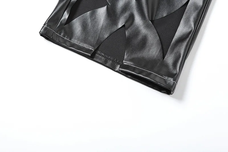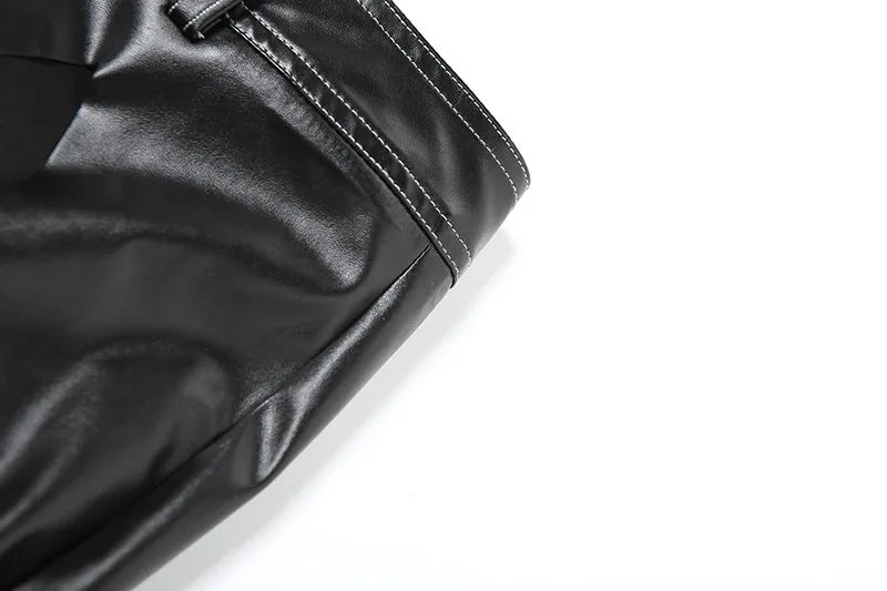 Knit PU Hollow Out Pants 2024 New Fashion Womens Pu Leather High Waist Straight Pant Solid Loose Casual Streetwear Trouser For