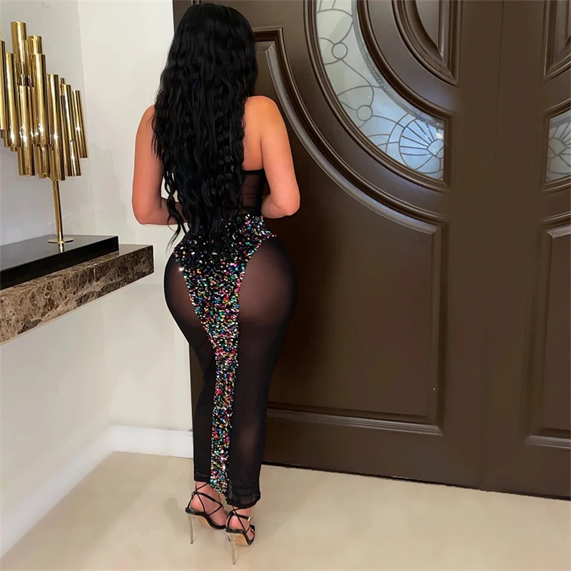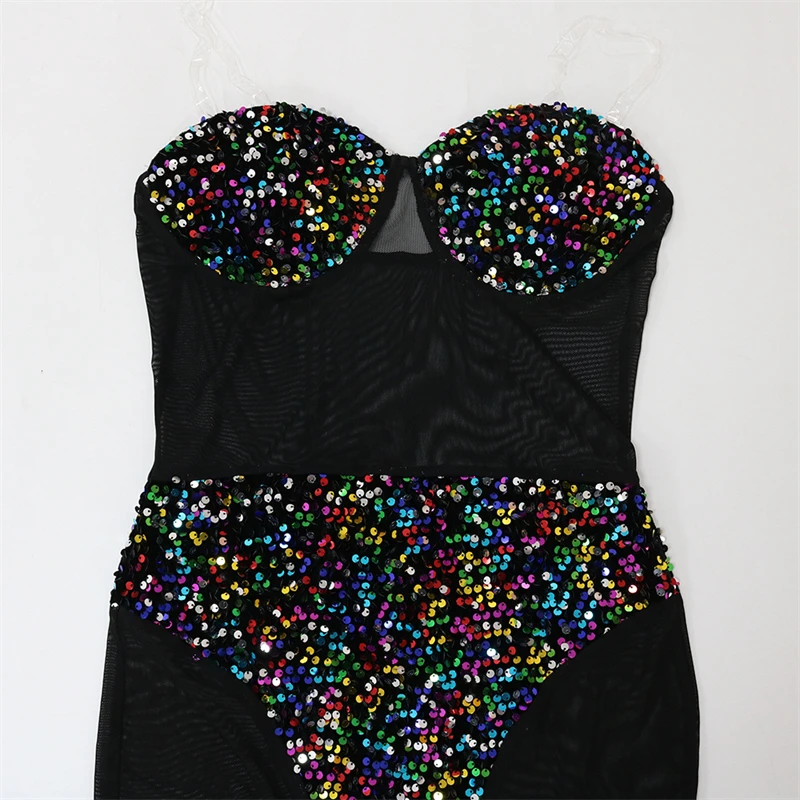 knitted party large black mesh sheer see through sexy shiny sequin woman princess strapless sleeveless bodycon dress for women
